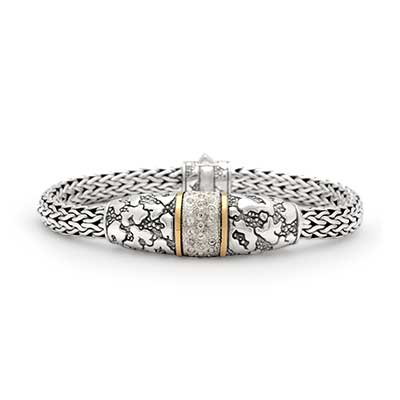Gold & Silver bracelet, chain oval 5x7, spring lock, white topaz pave setting, plaster motif collection