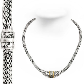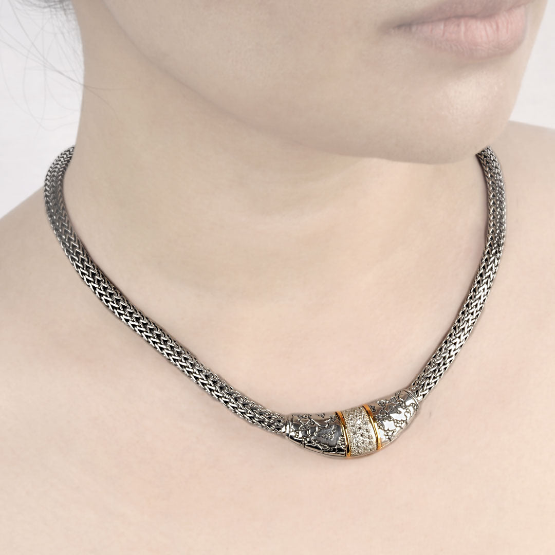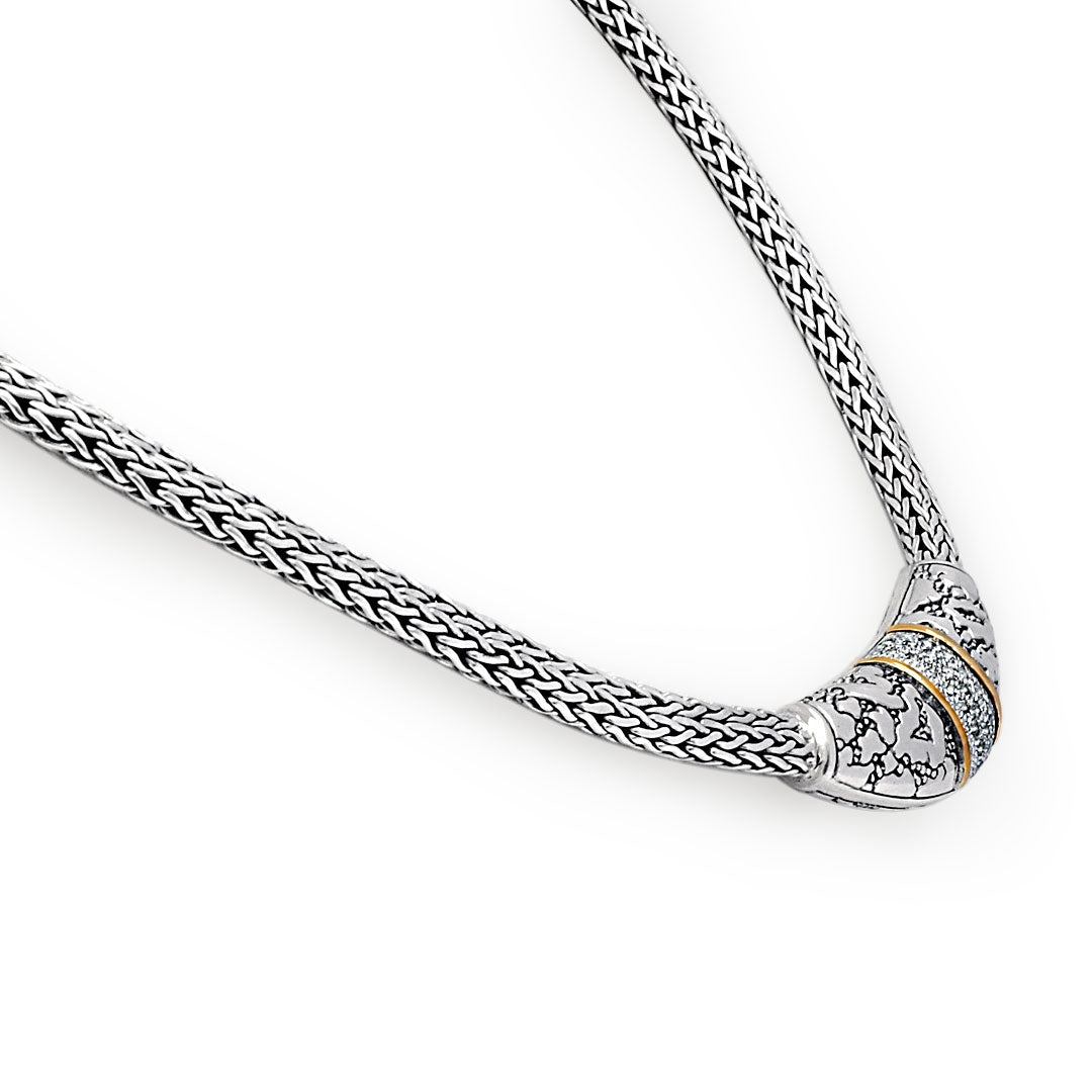 Gold & Silver necklace, 18K gold bezel, plaster motif collection, white topaz pave, chain tulang naga oval 4x6