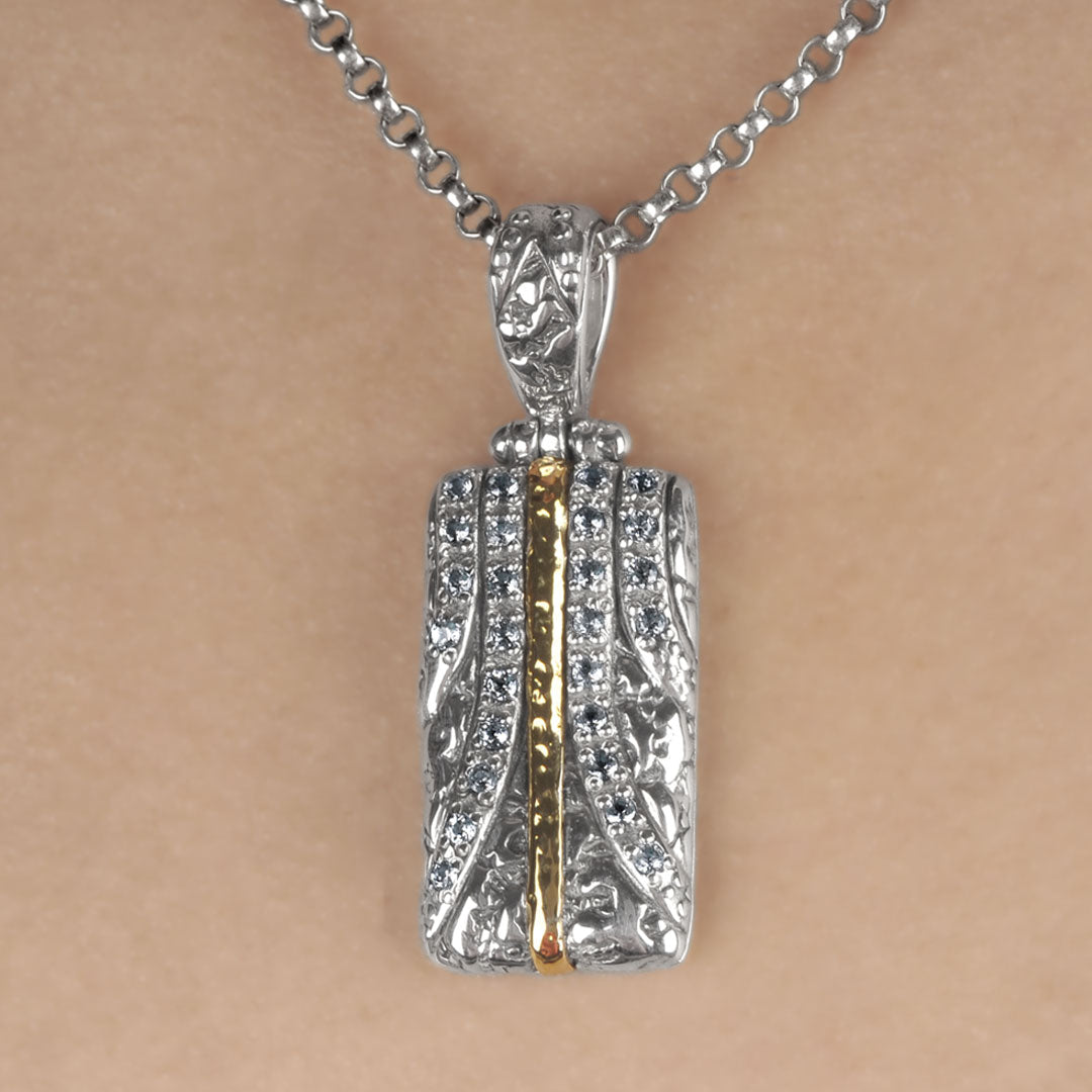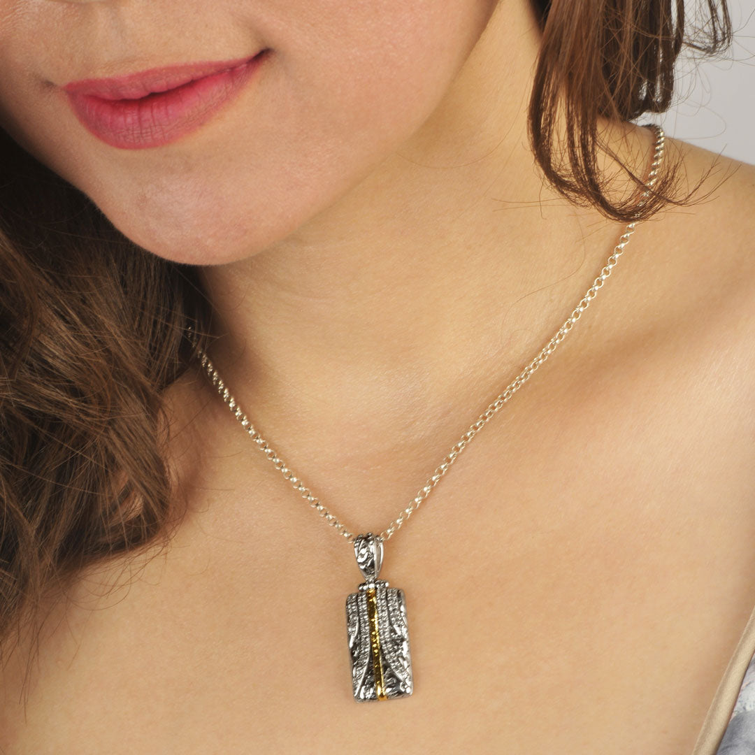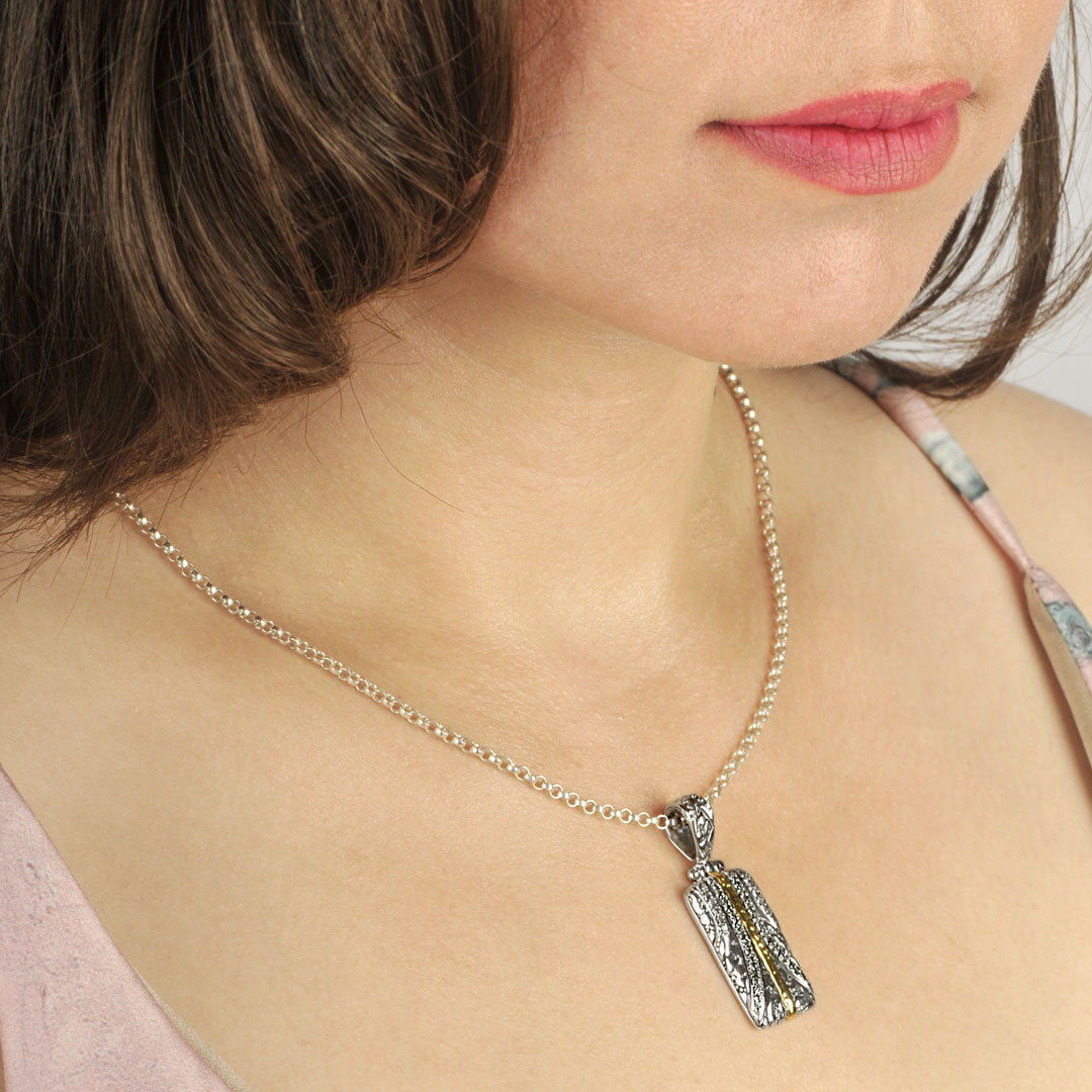 Gold & Silver Pendant Plaster Motif, 18K Gold Hammer