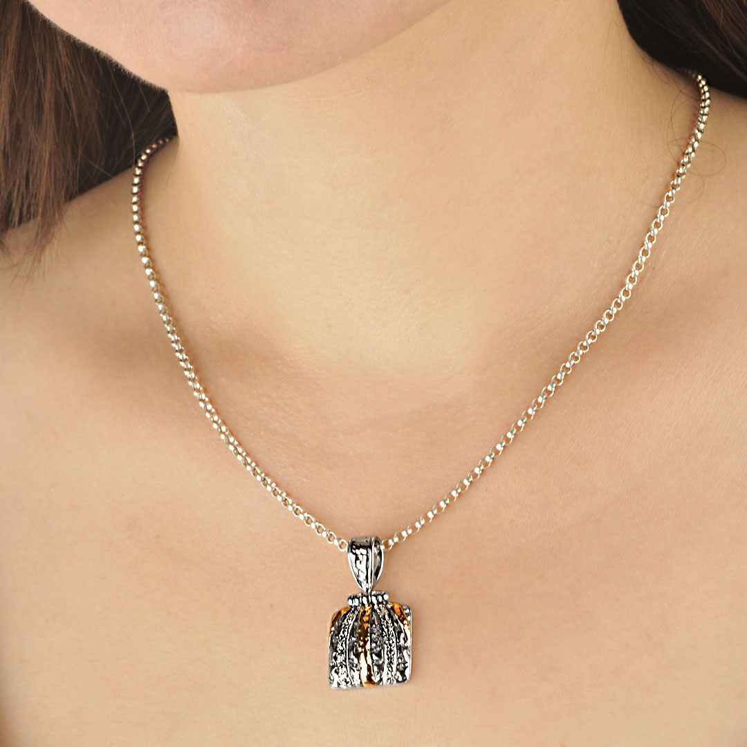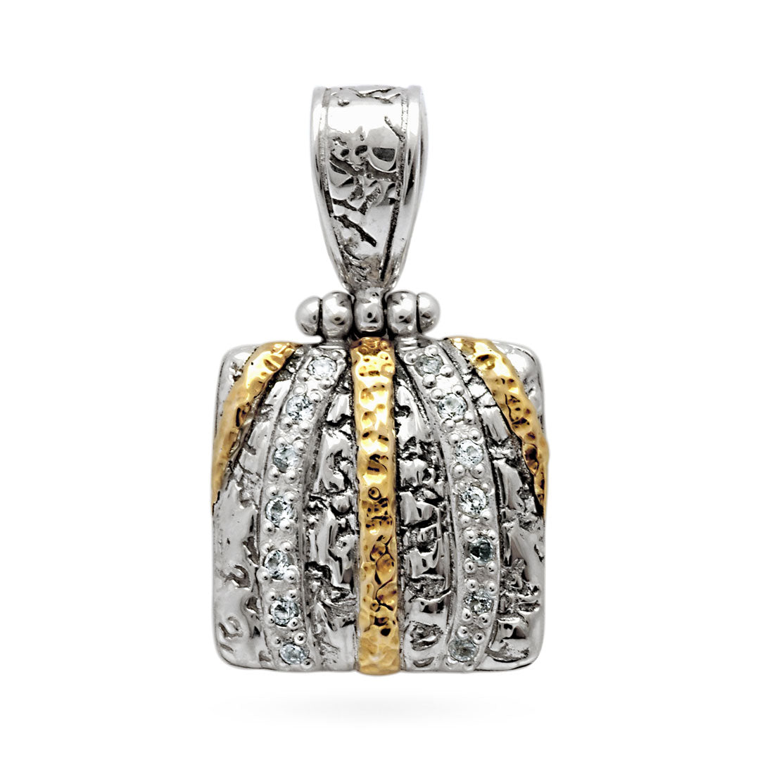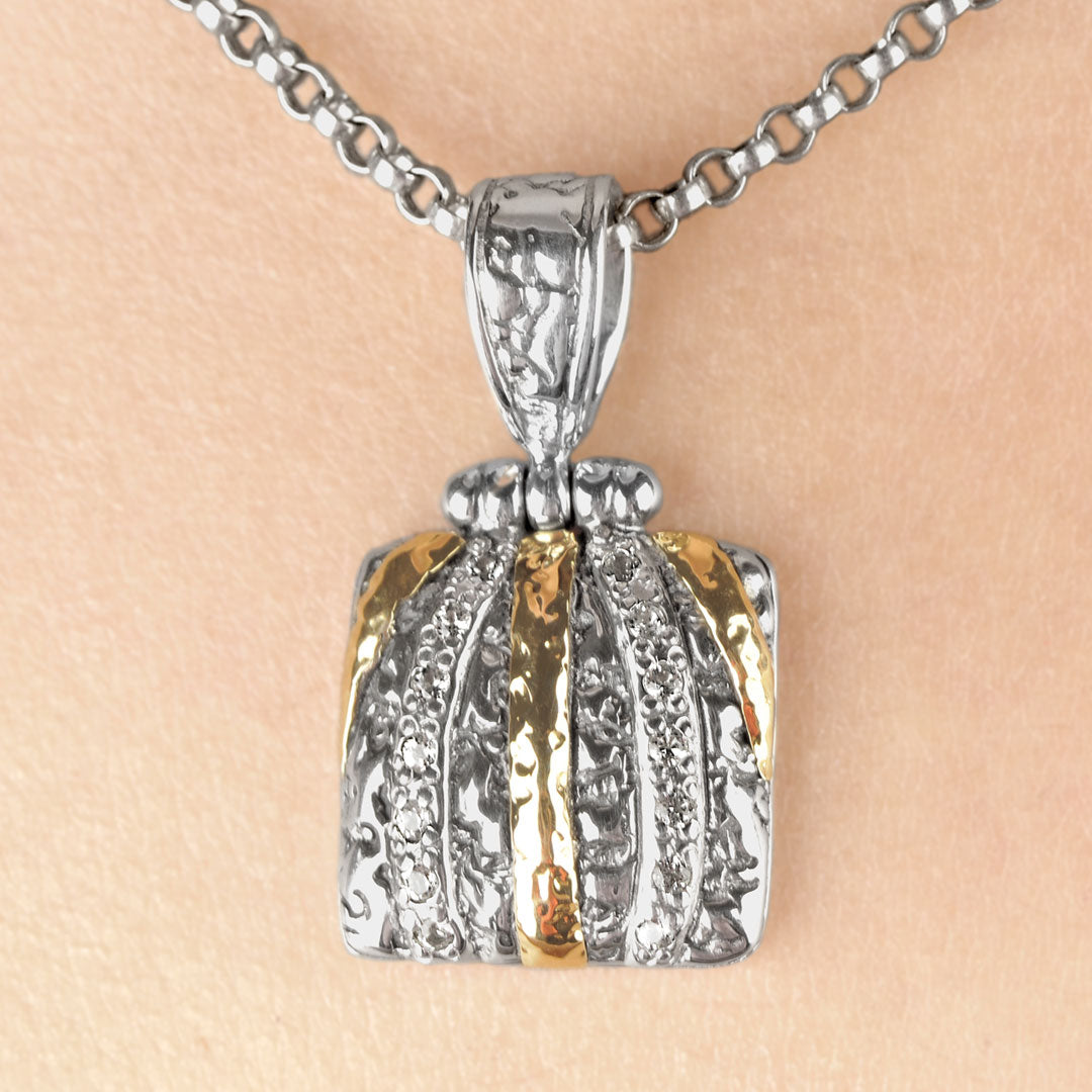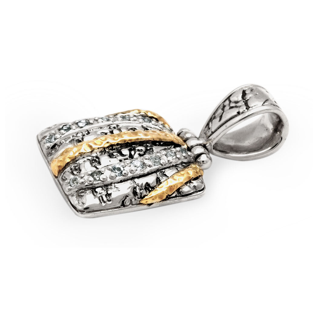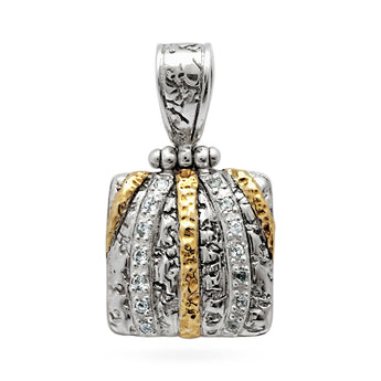 Gold & Silver pendant, 18K gold hammer, plaster motif collection, white topaz pave setting