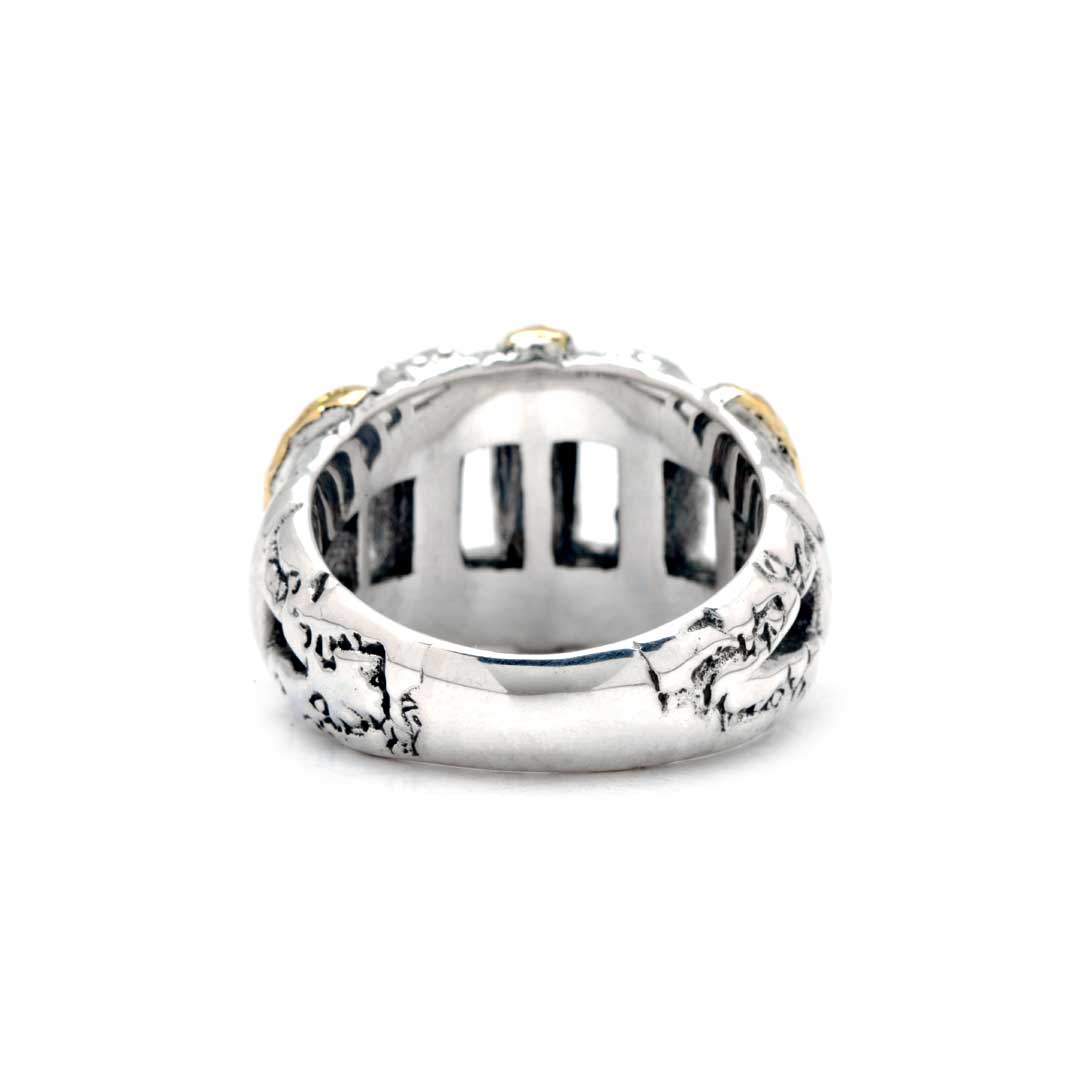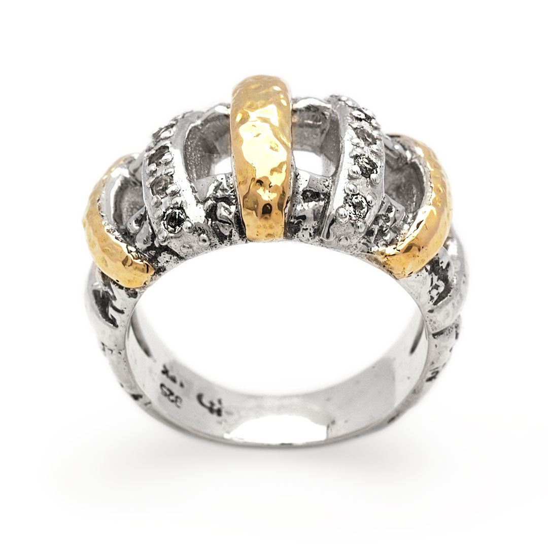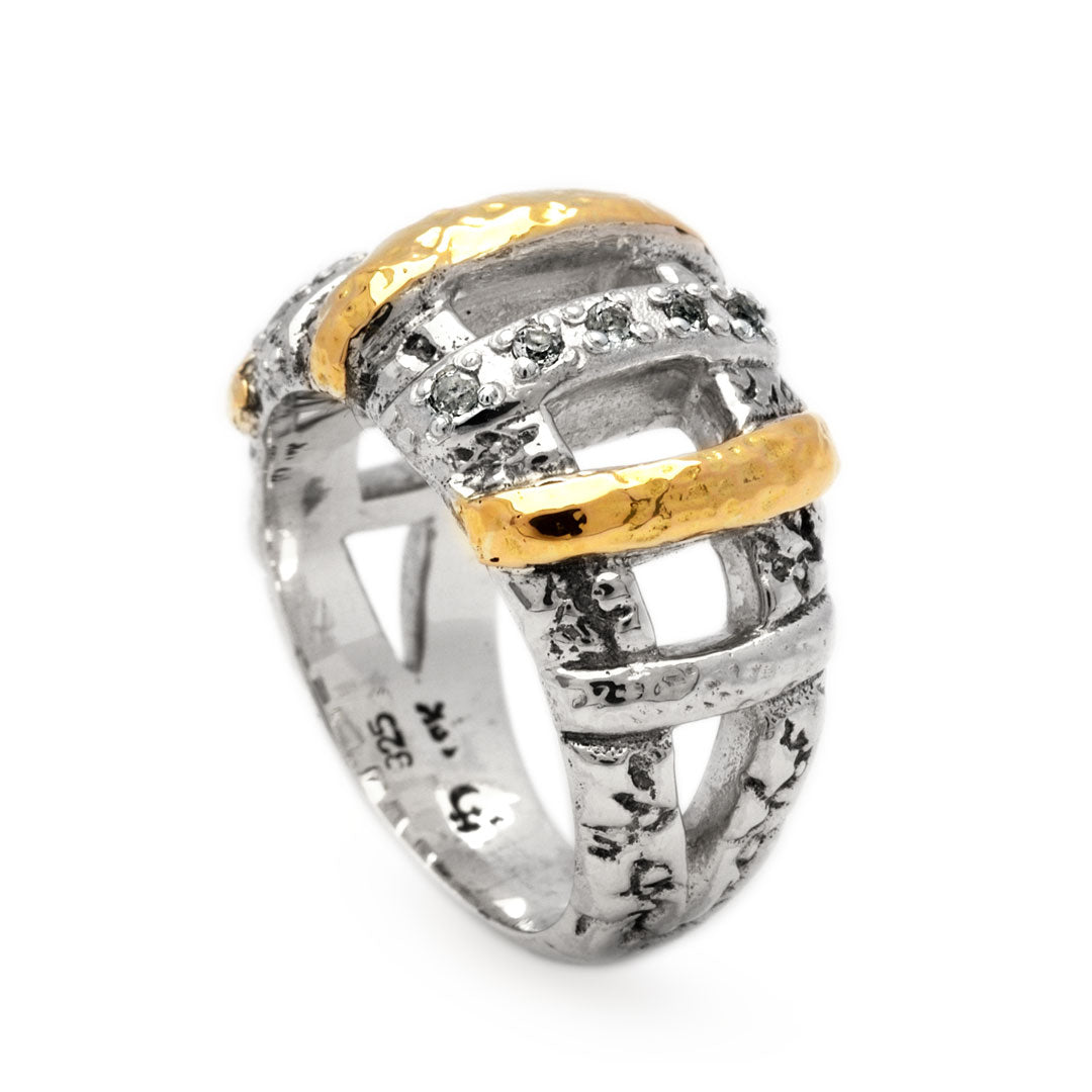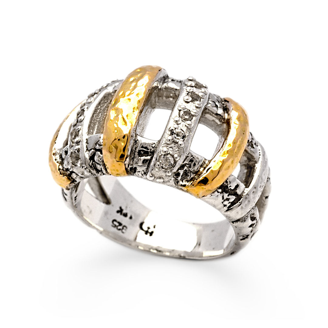 Gold & Silver Ring, Plaster Motif White Topaz Pave