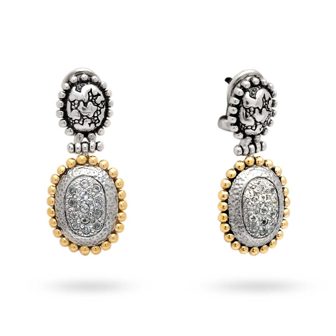 Gold & Silver Stud Earring 18K Gold, Plaster Motif White Topaz
