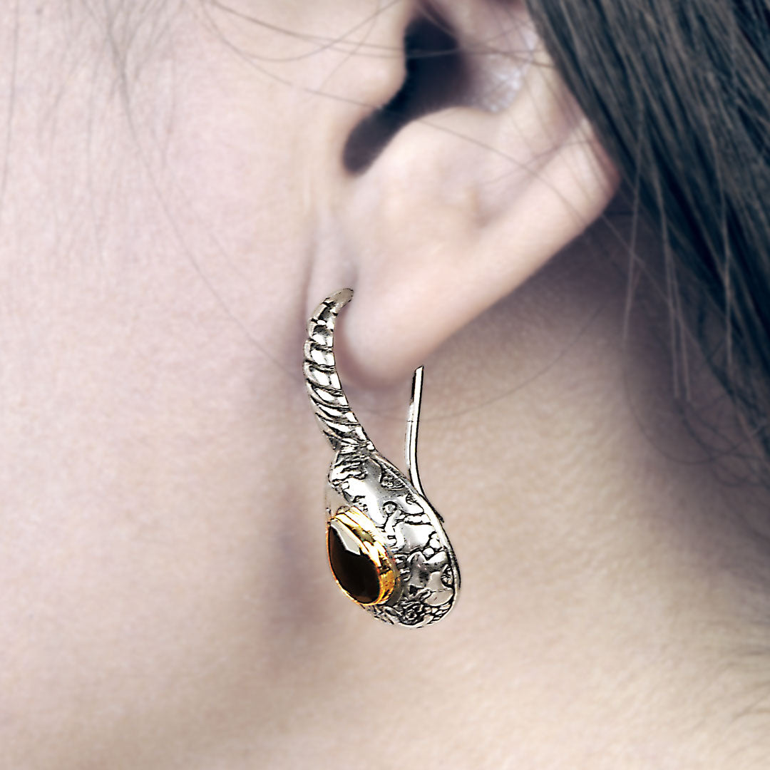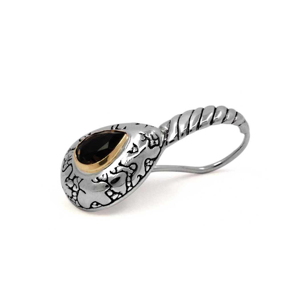 Silver & Gold Earring Pear Shape, Smoky Quartz, Plaster Texture