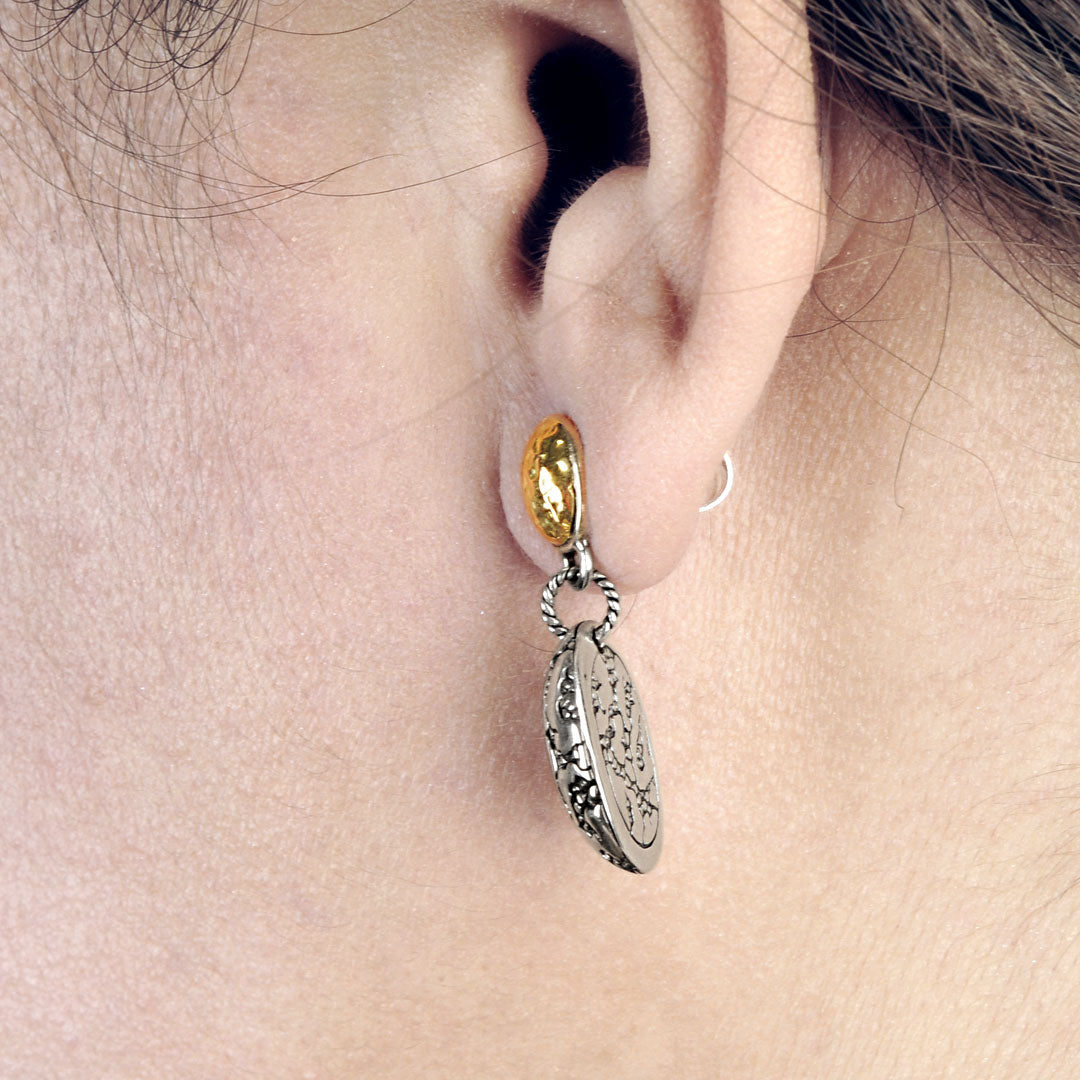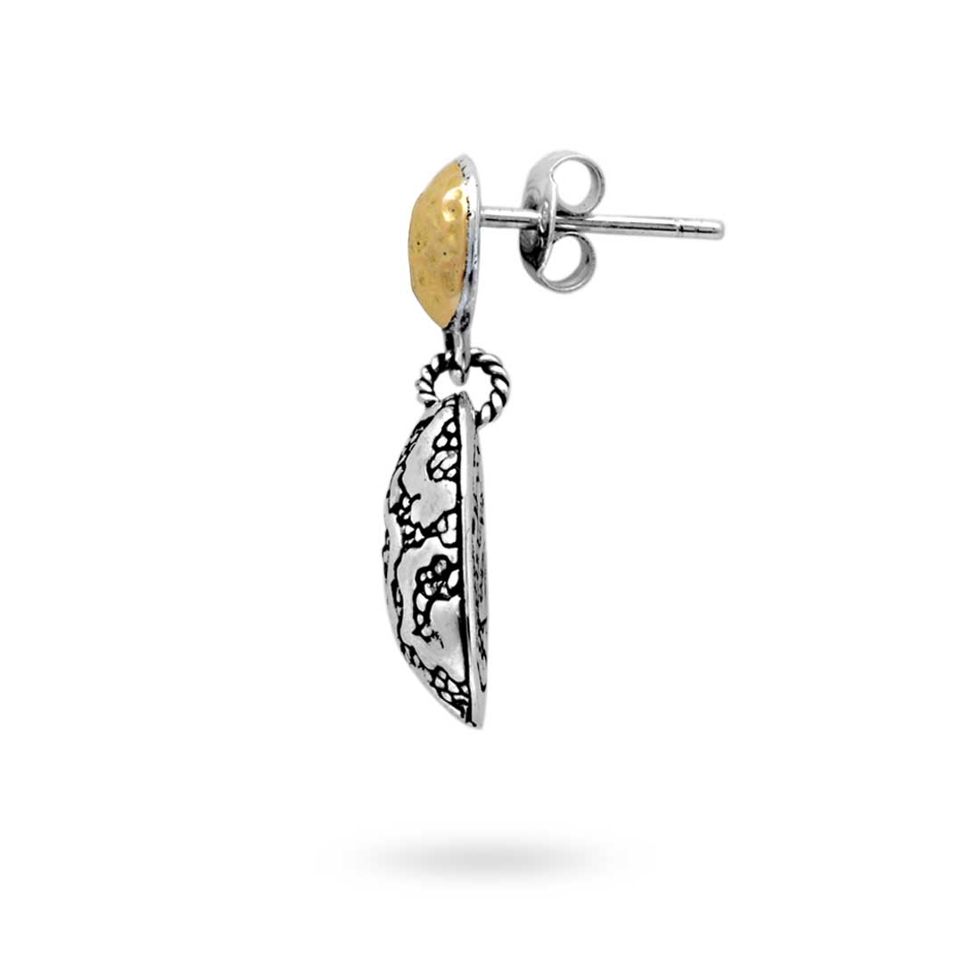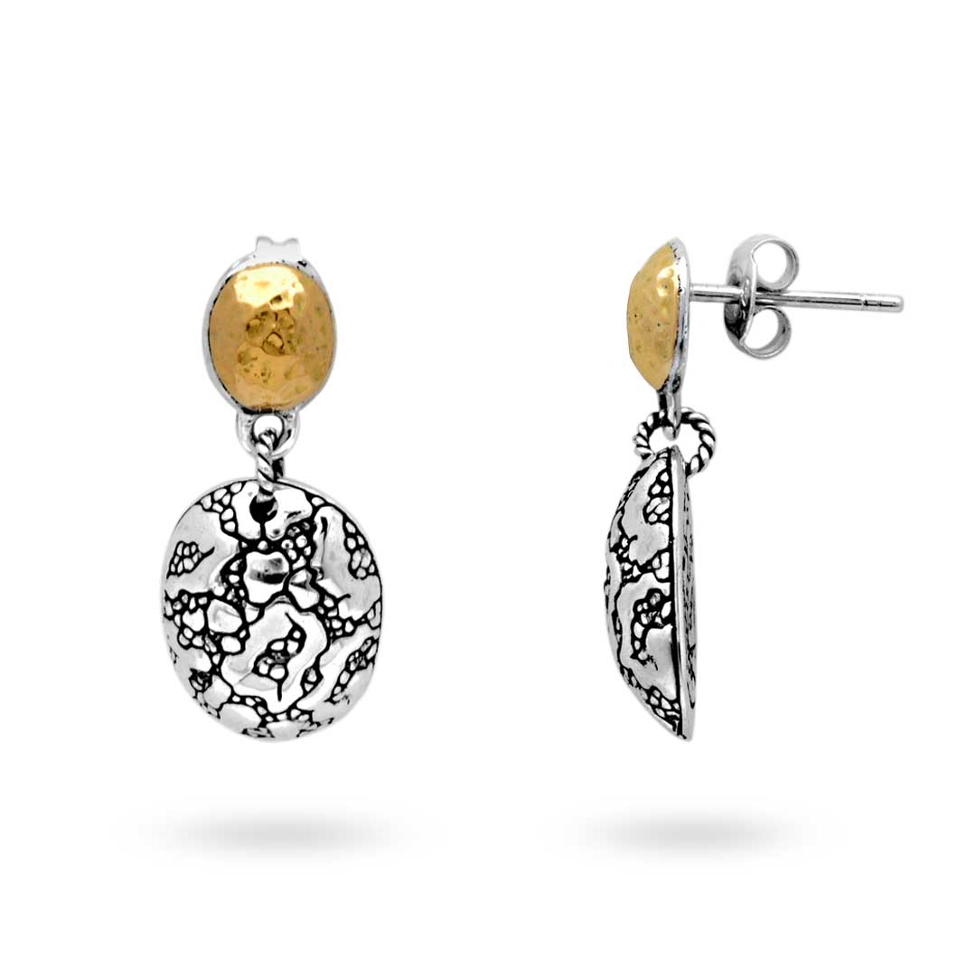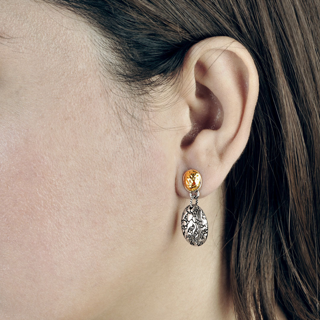 Silver and Gold Earring with semi precious stones, Plaster texture motif