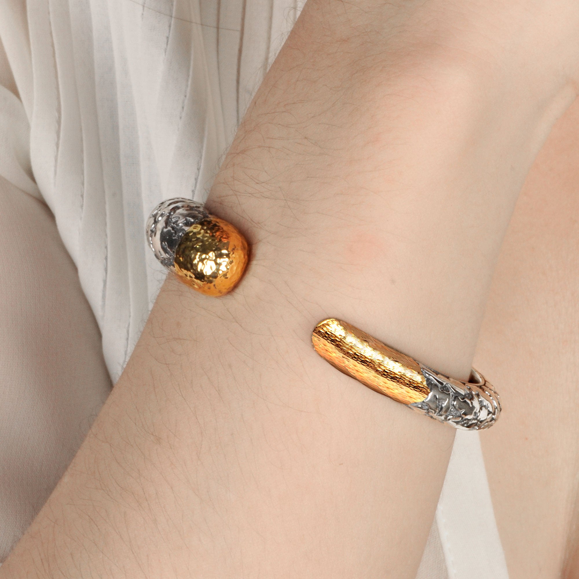 Silver & Gold Kick-Cuff Bracelet Plaster Texture