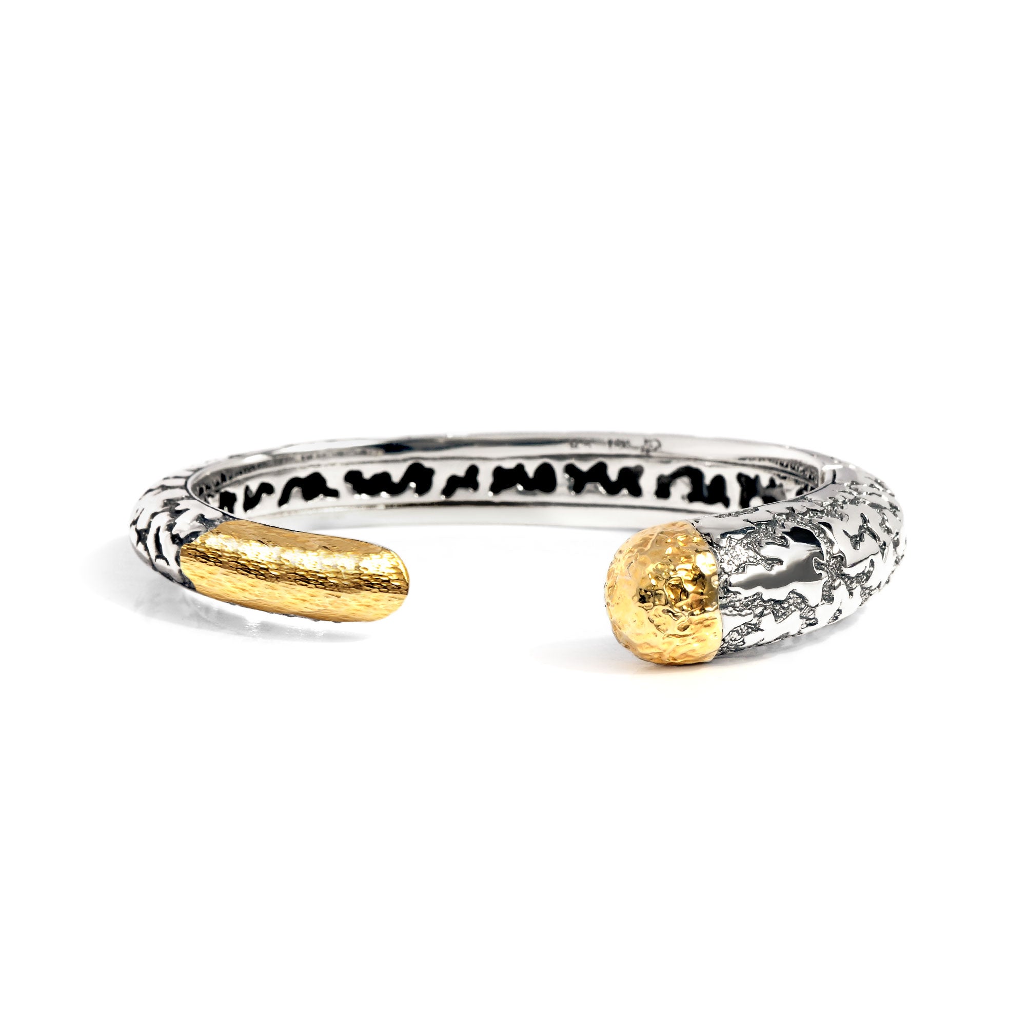 Silver and solid gold accent 18k hammered finishing, Plaster Texture motif, kick cuff collection