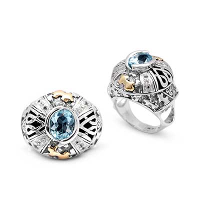 Gold & Silver Ring, Puzzle Motif Natural Blue Sky Topaz