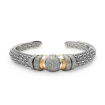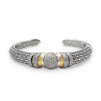Sterling silver and gold kick cuff bracelet with White Topaz pave, Sisik Naga collection