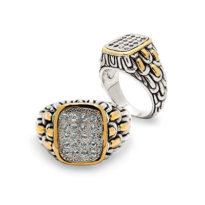 Gold & Silver Sisik Naga Ring, White Topaz Pave