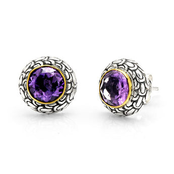 Silver & Gold Stud Earring Amethyst, 18K Gold Sisik Naga