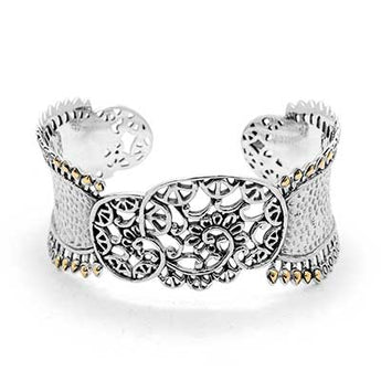 Gold Silver Cuff, 18K Hammer Detail, Kebaya Collection