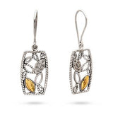 Gold & Silver earrings, marquise shape motif with water rope, white topaz pave setting