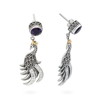 Gold & Silver Earring Phoenix, Amethyst Round