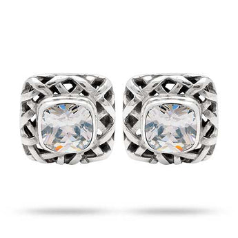 Silver Earring White CZ Cushion 8mm