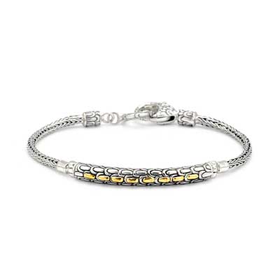 Gold & Silver bracelet, sisik naga collection, 18K gold accents, Tulang Naga Chain