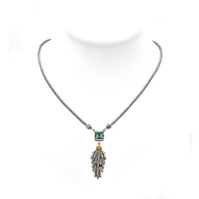 Gold & Silver necklace, Blue Quartz cushion 8 mm, 18K gold accents. Chain round 2.5 mm