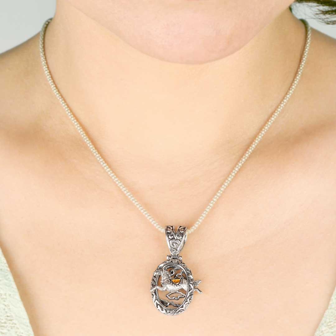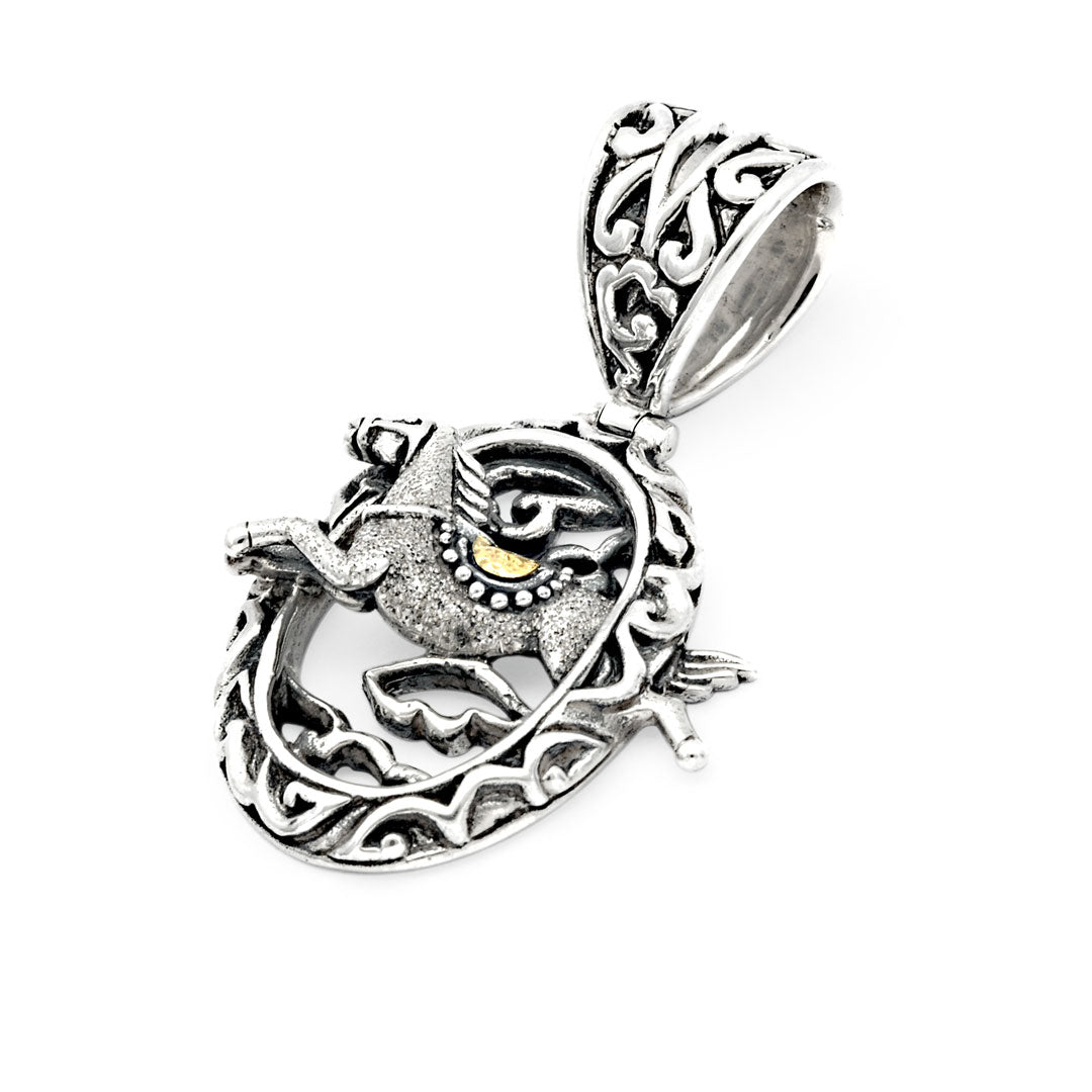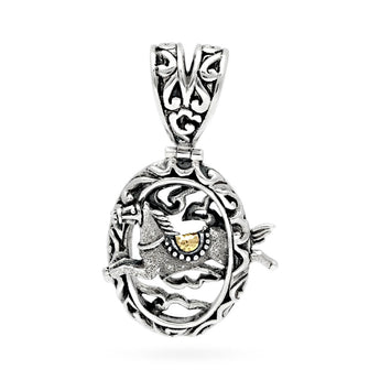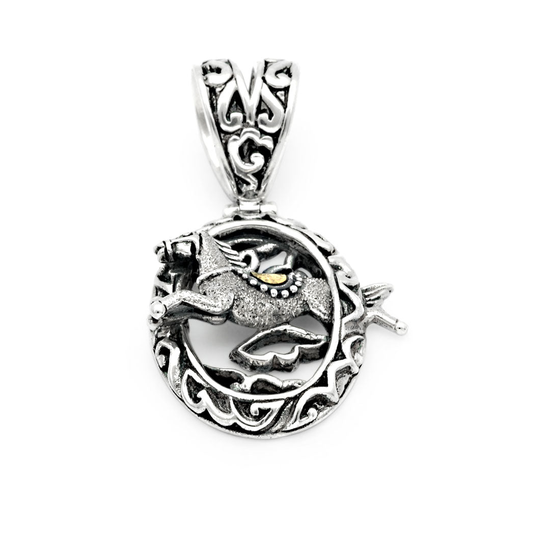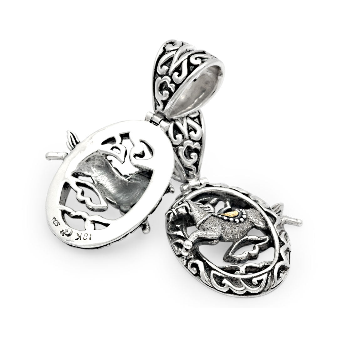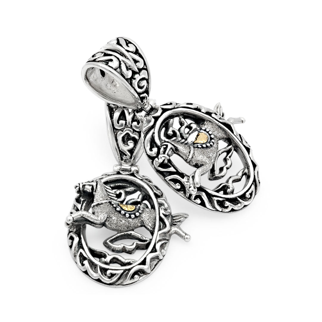 Gold & Silver horse pendant with mega mendung cloud motif, lever back