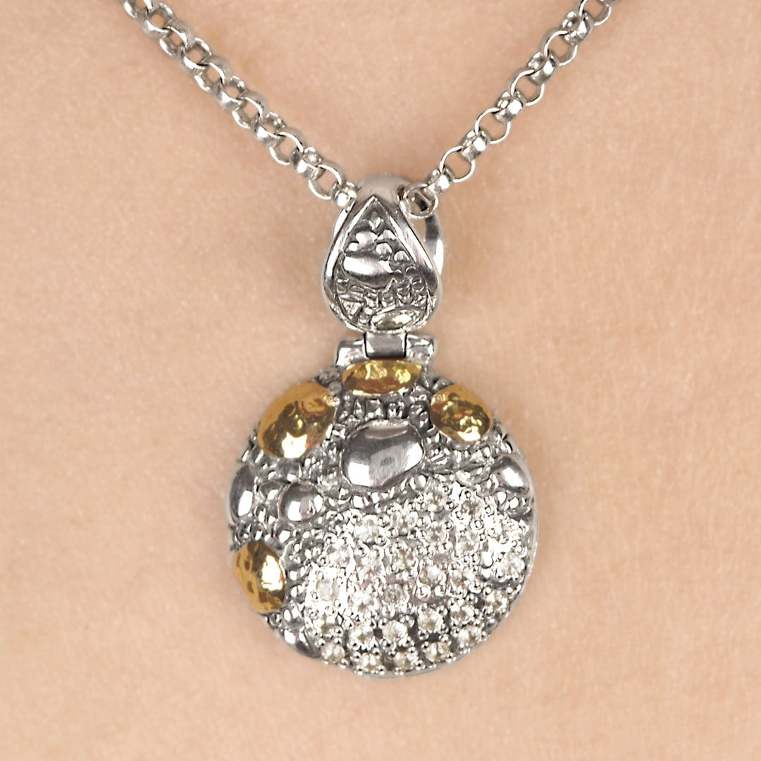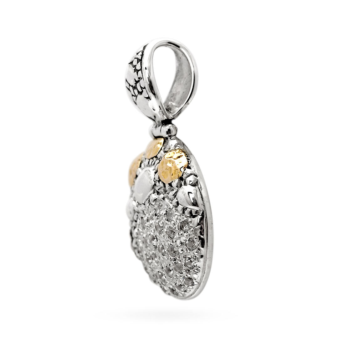 Gold & Silver pendant, crocodile skin collection, white topaz pave setting