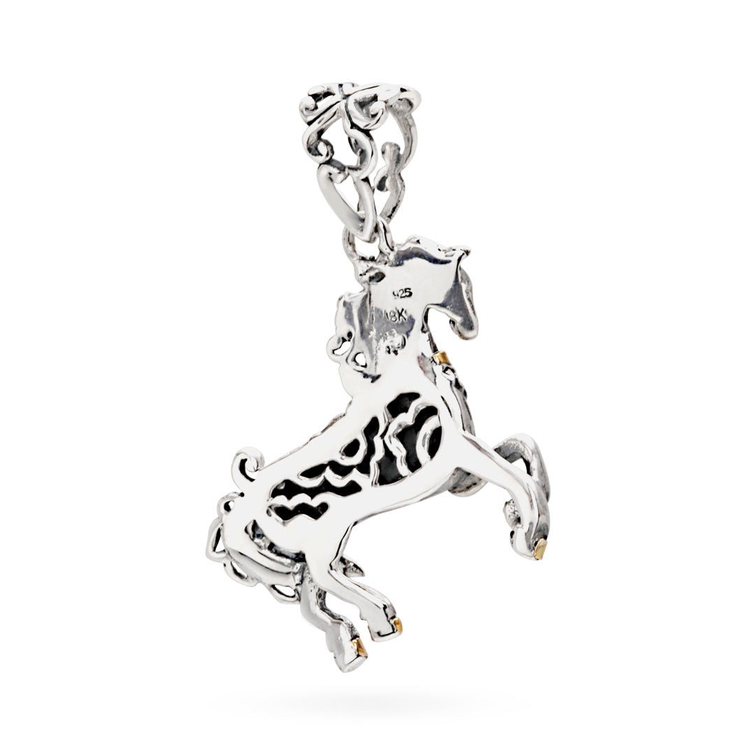 Gold & Silver horse pendant with mega mendung cloud motif