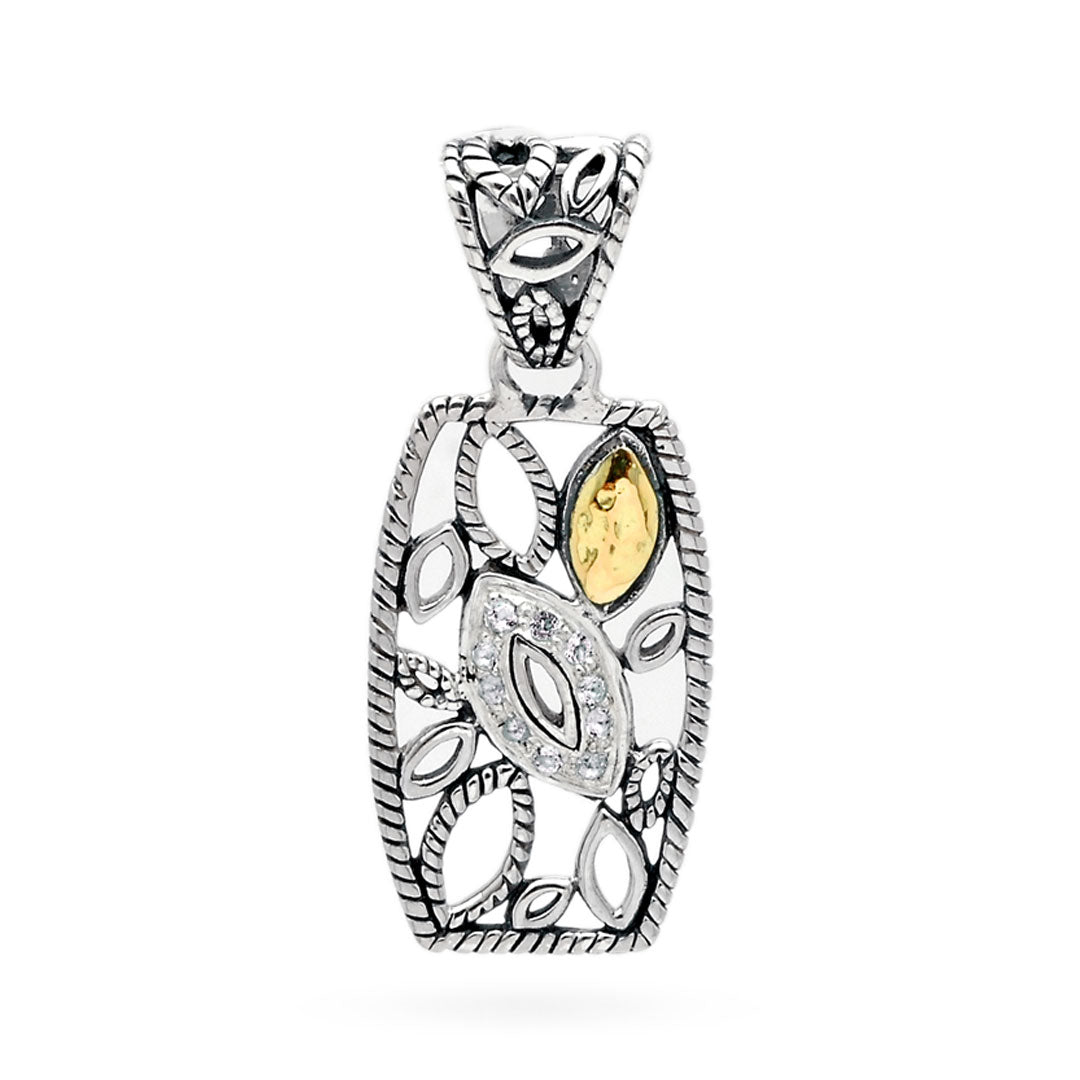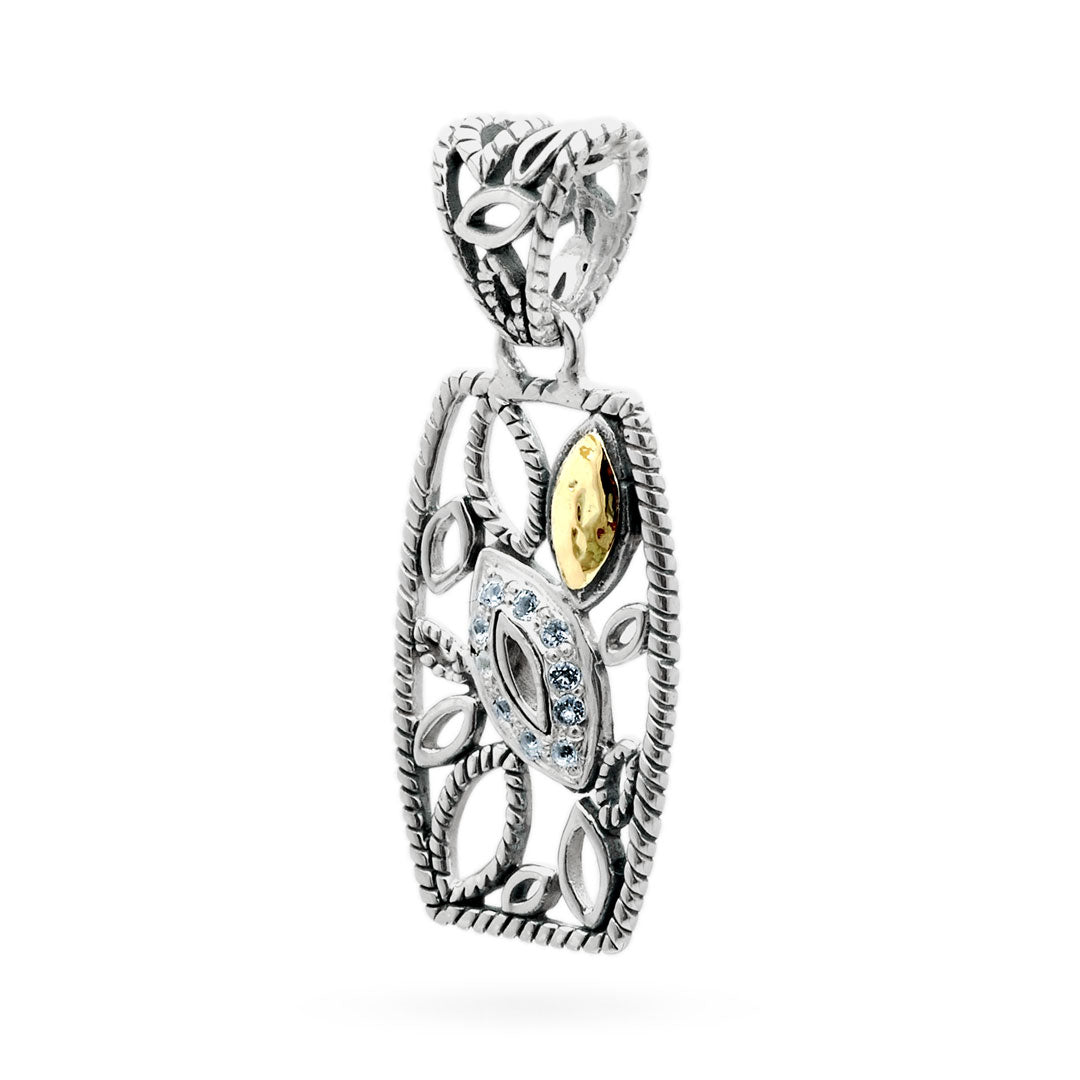 Gold & Silver pendant, geometrical collection, marquise shape with water rope, white topaz pave setting