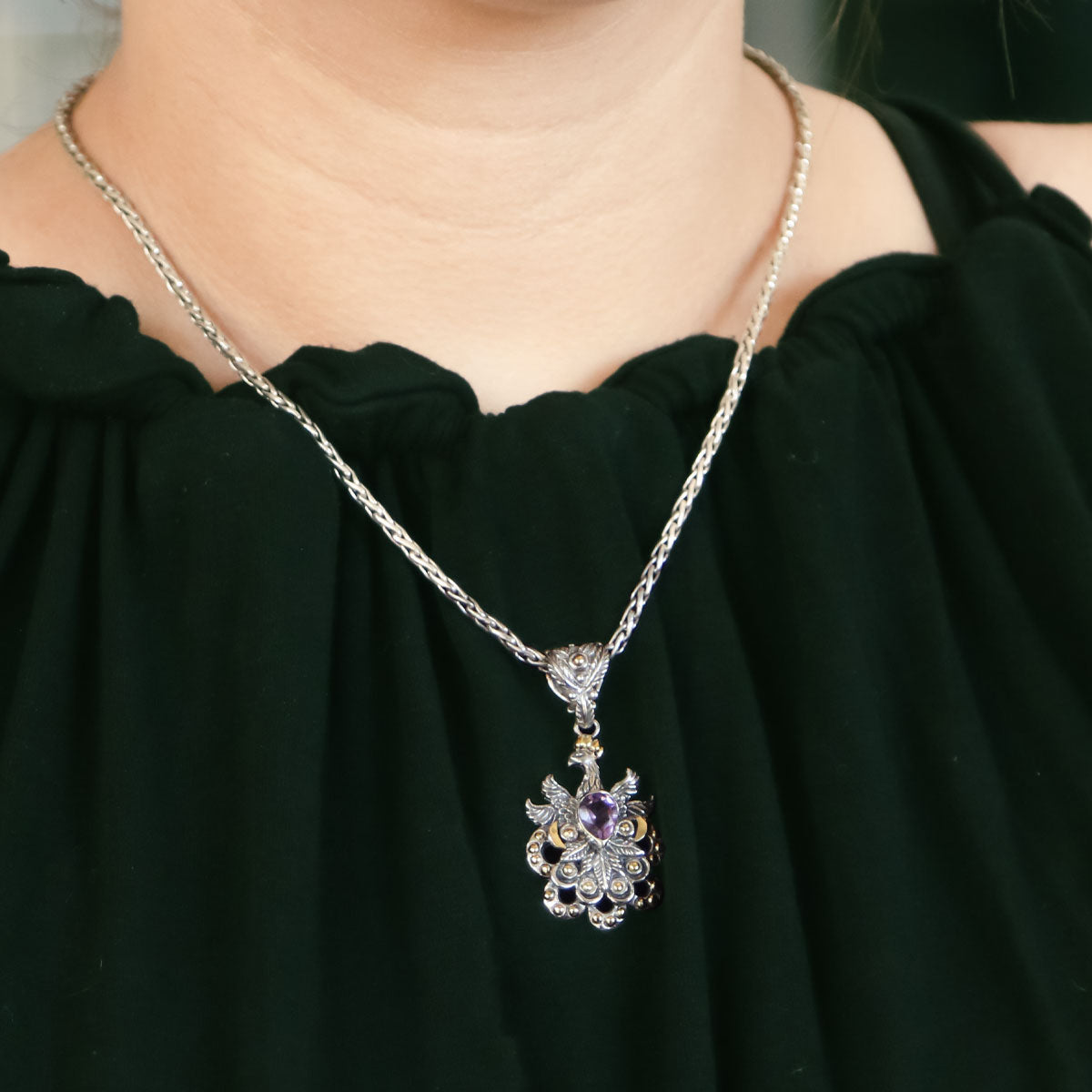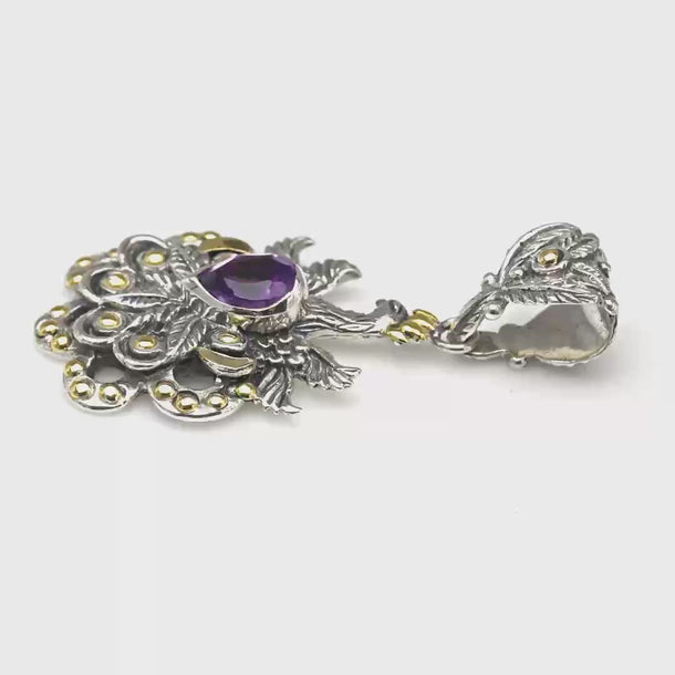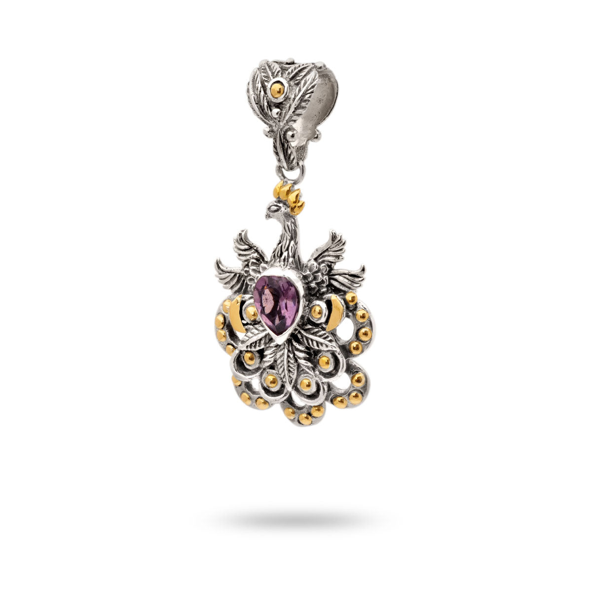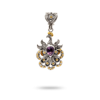 Gold & Silver Pendant Phoenix, Amethyst Pear