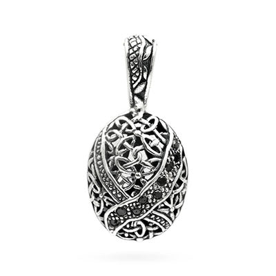 Silver Pendant with Black Sapphire, bali celtic motif