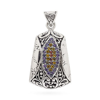 Silver Pendant with semi precious stones, crocodile and balinese motif