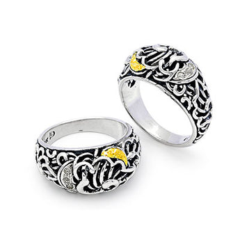 Gold & Silver Ring, Mega Mendung Collection White Topaz Pave