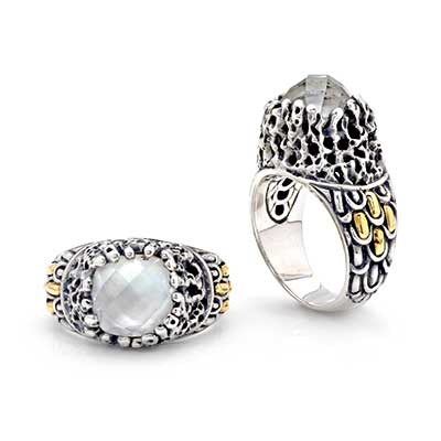 Gold & Silver ring, white Mabe, Sisik Naga Collection