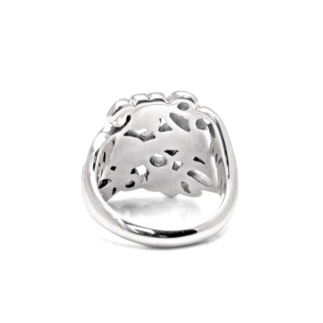 Store in the provided anti-tarnish pouch when not worn. Keep away from moisture and direct sunlight to preserve the silver's luster.