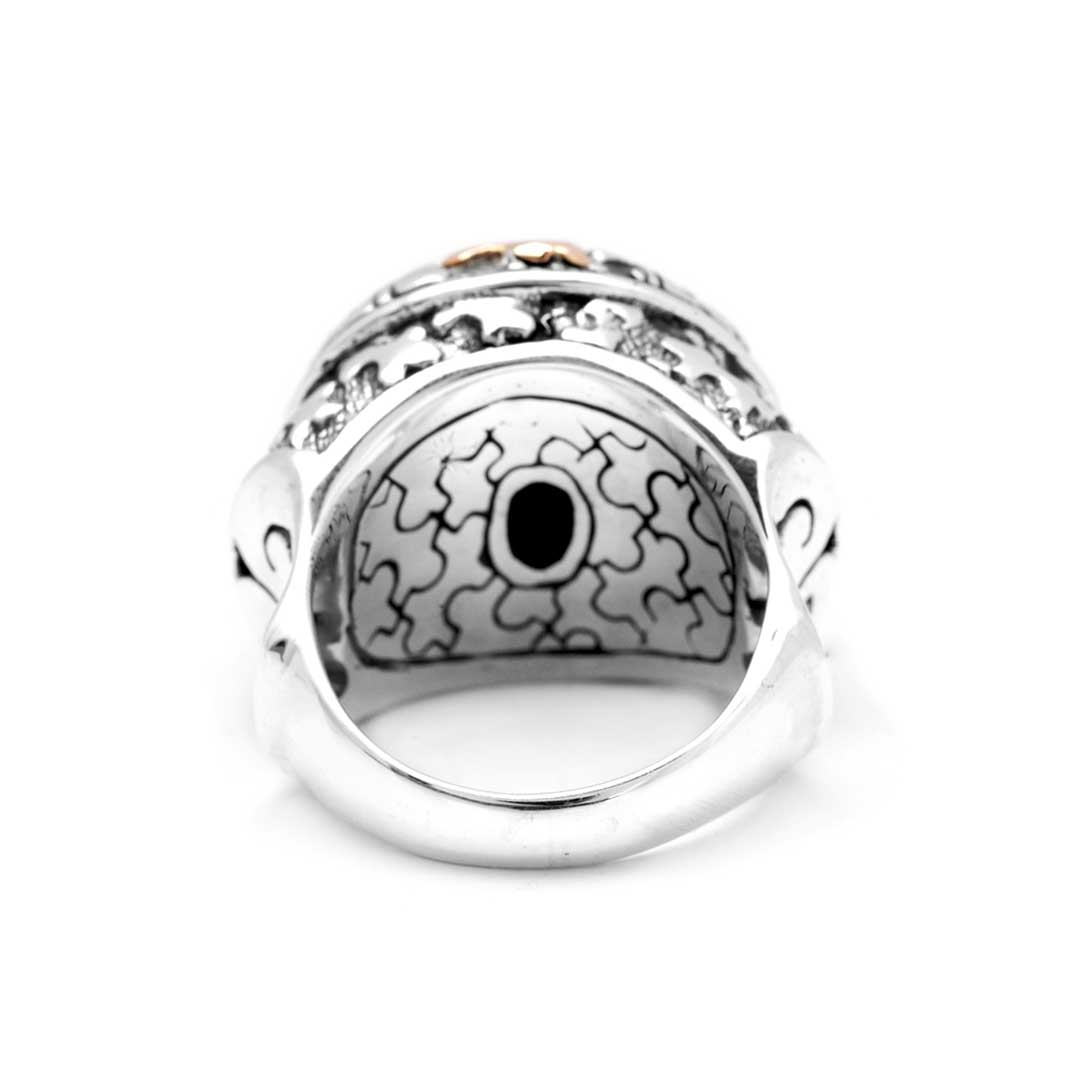Anillo de oro y plata con motivo de rompecabezas, engastado con topacio azul natural azul cielo