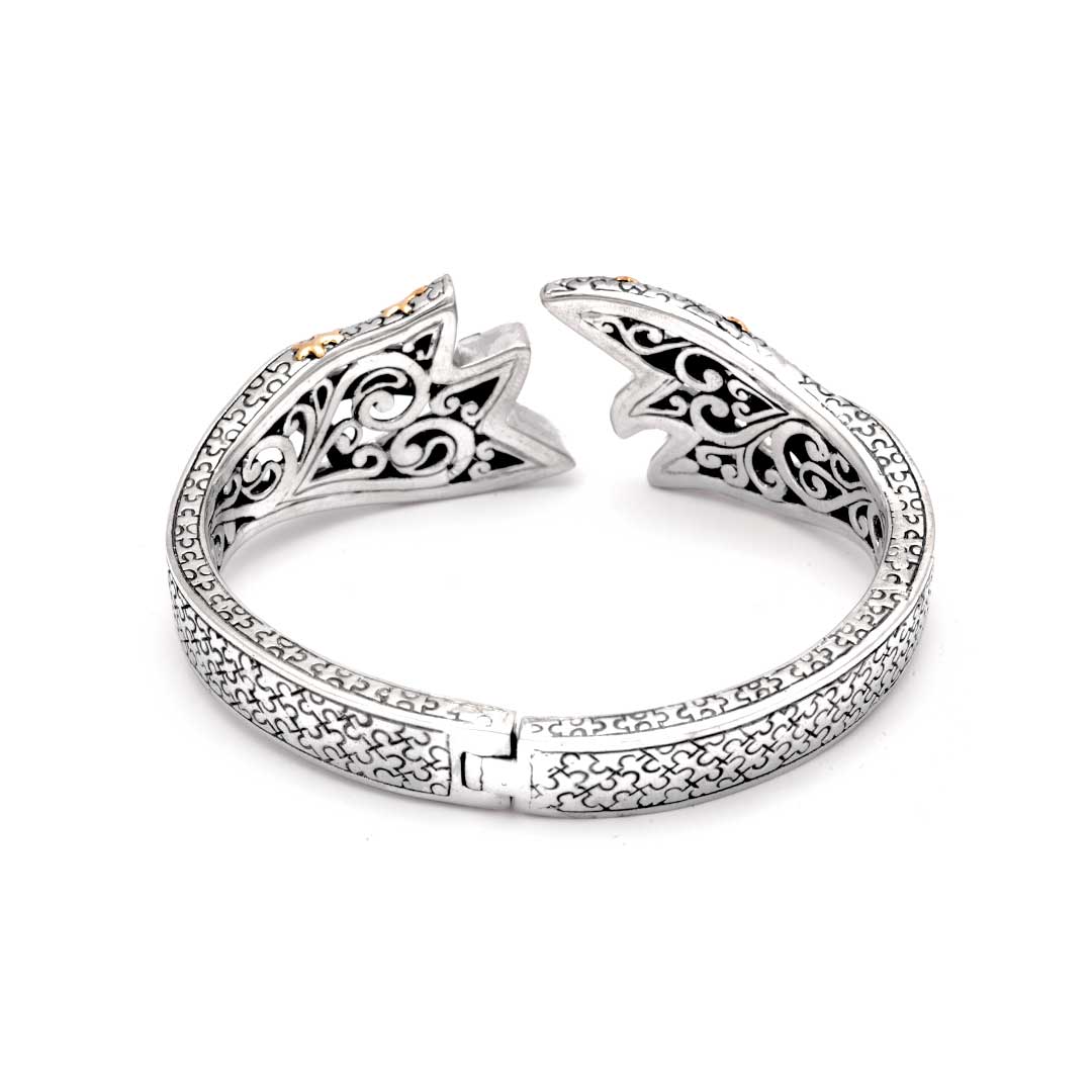 Brazalete de plata y oro con motivo de rompecabezas y circonita cúbica