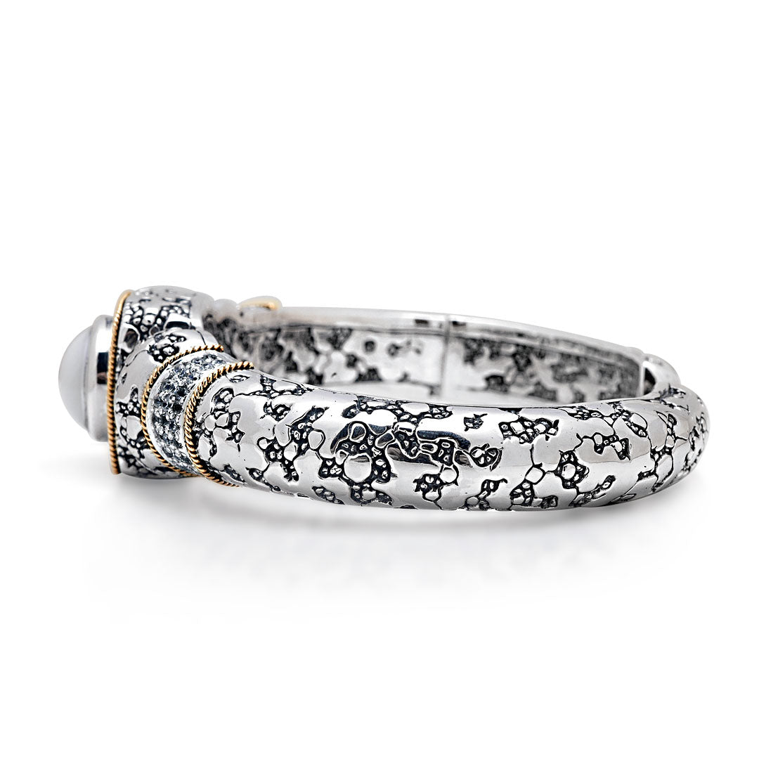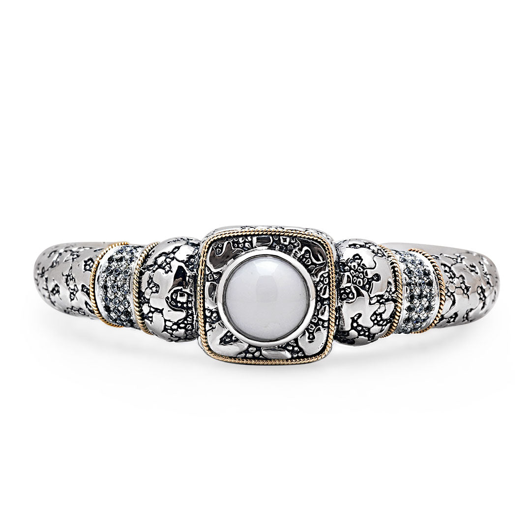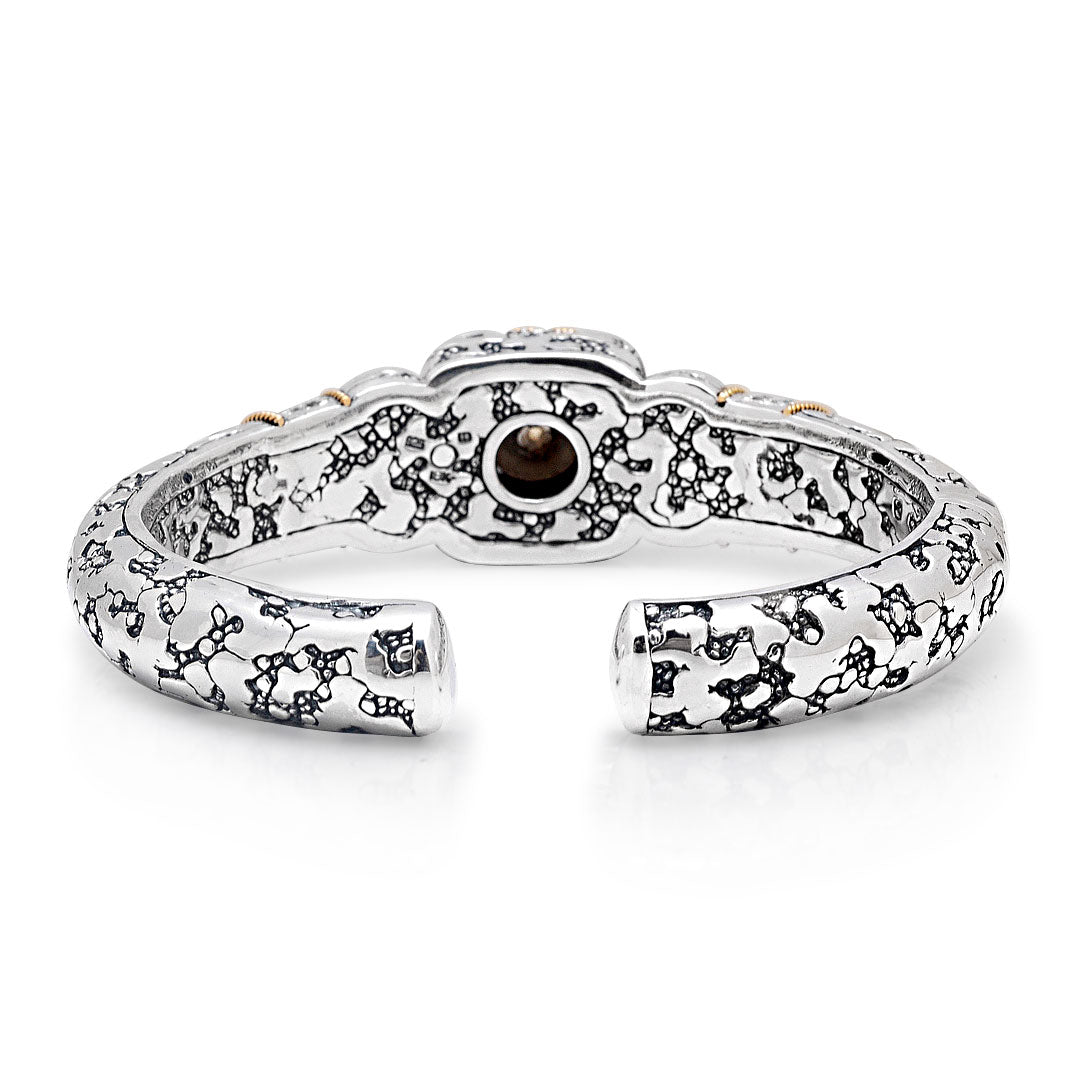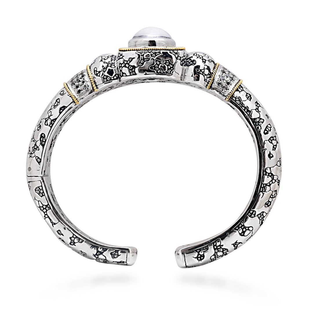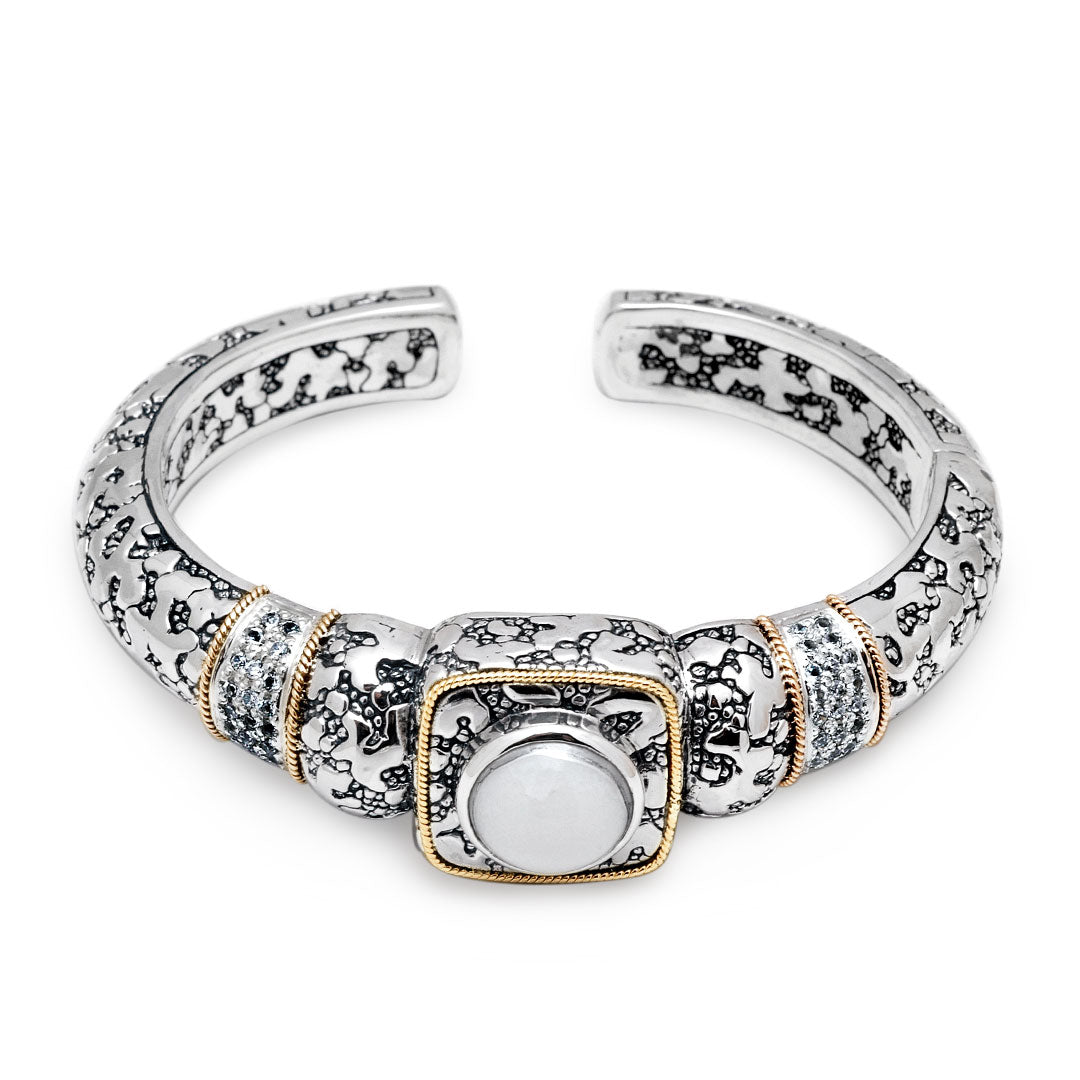 Brazalete de puño de plata y oro con circonita cúbica Mabe blanca y motivo de yeso balinés Jawan