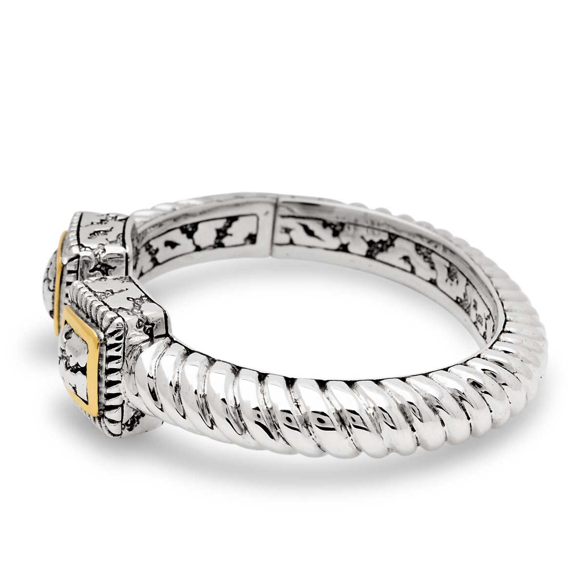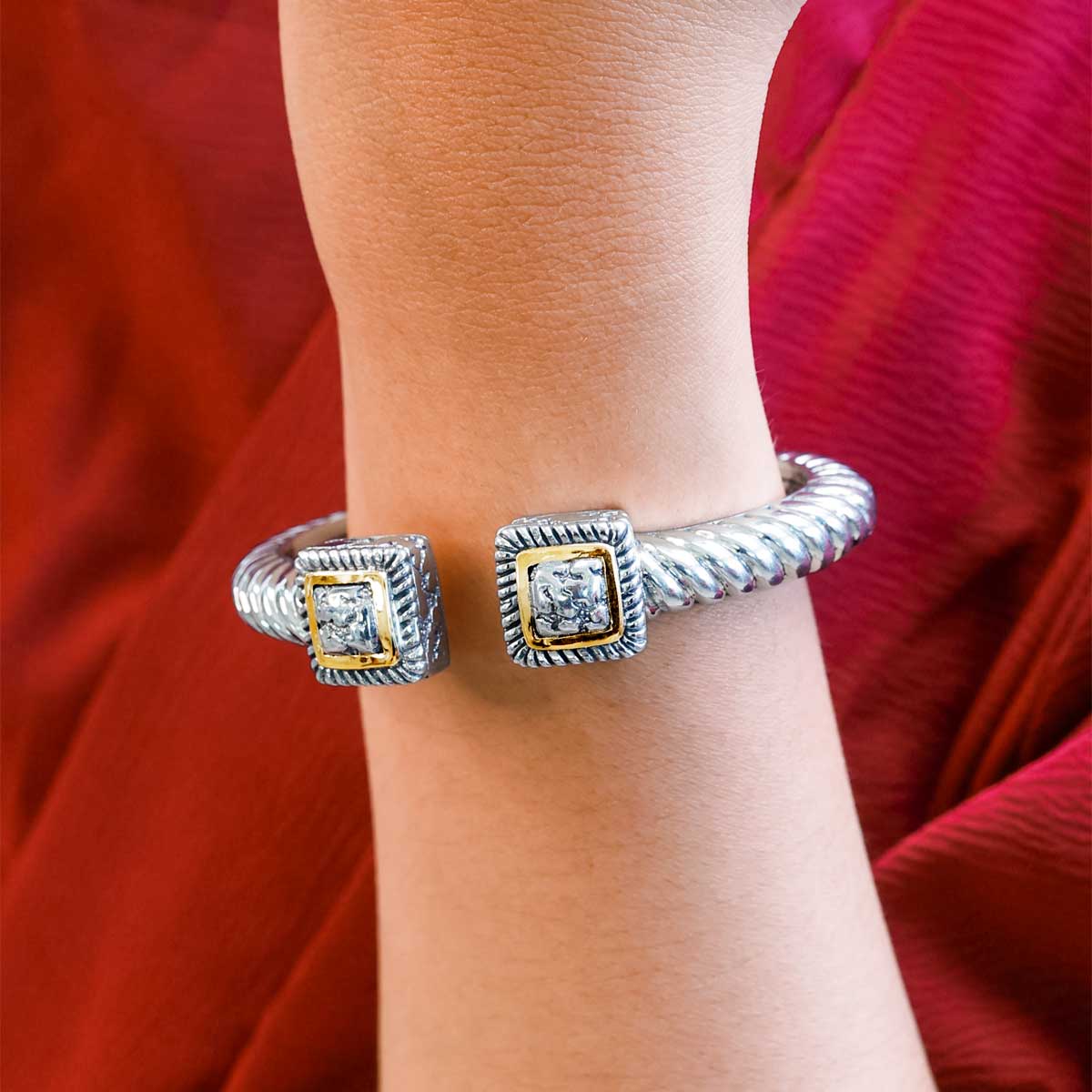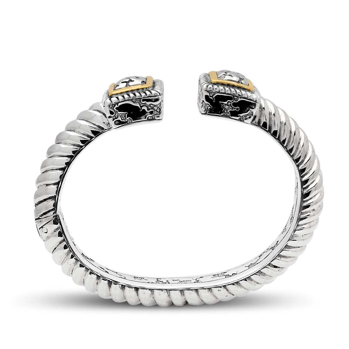 Brazalete de cable de plata y oro, motivo de yeso, oro de 18 quilates