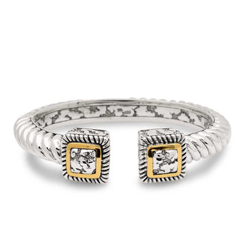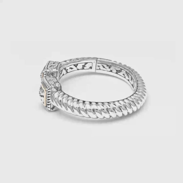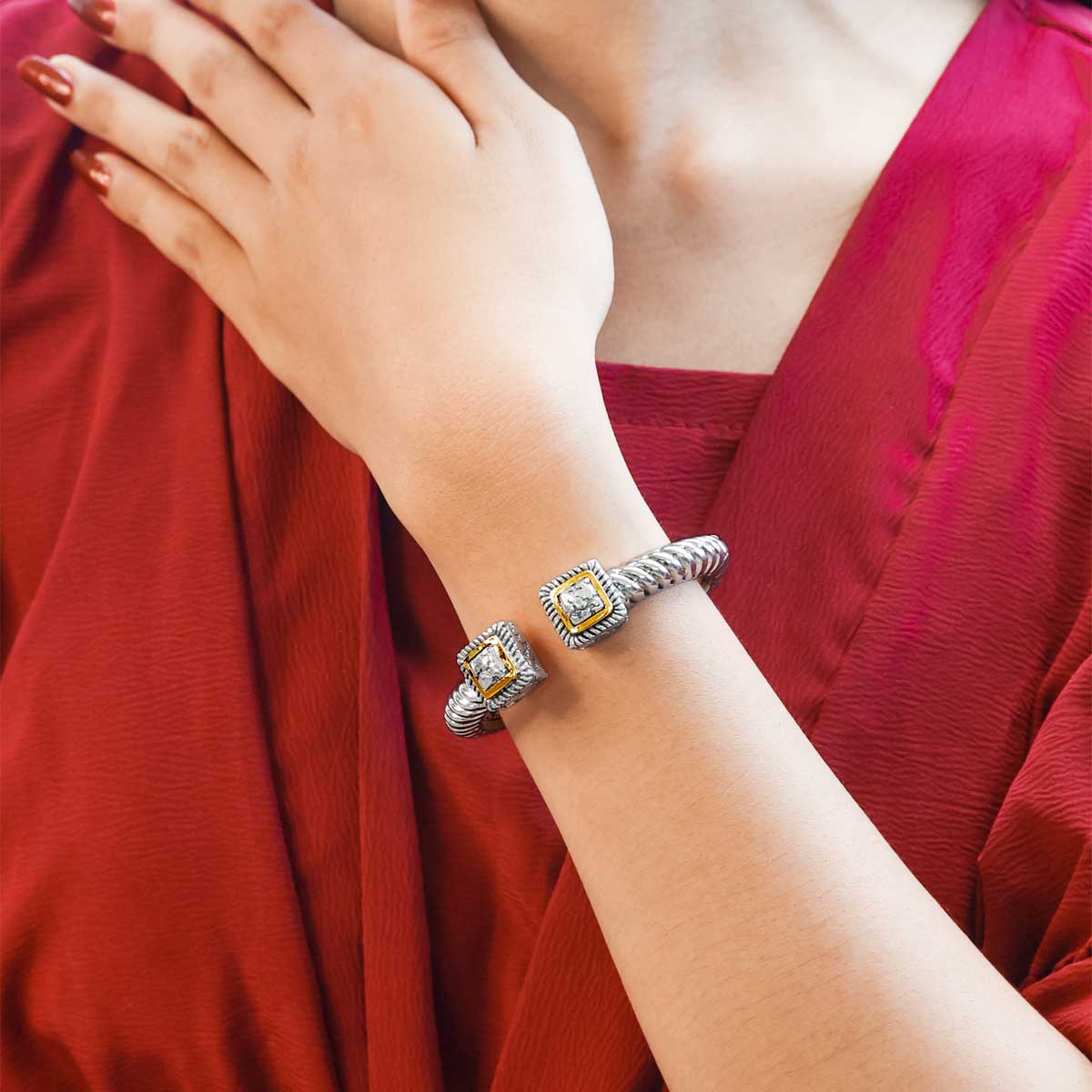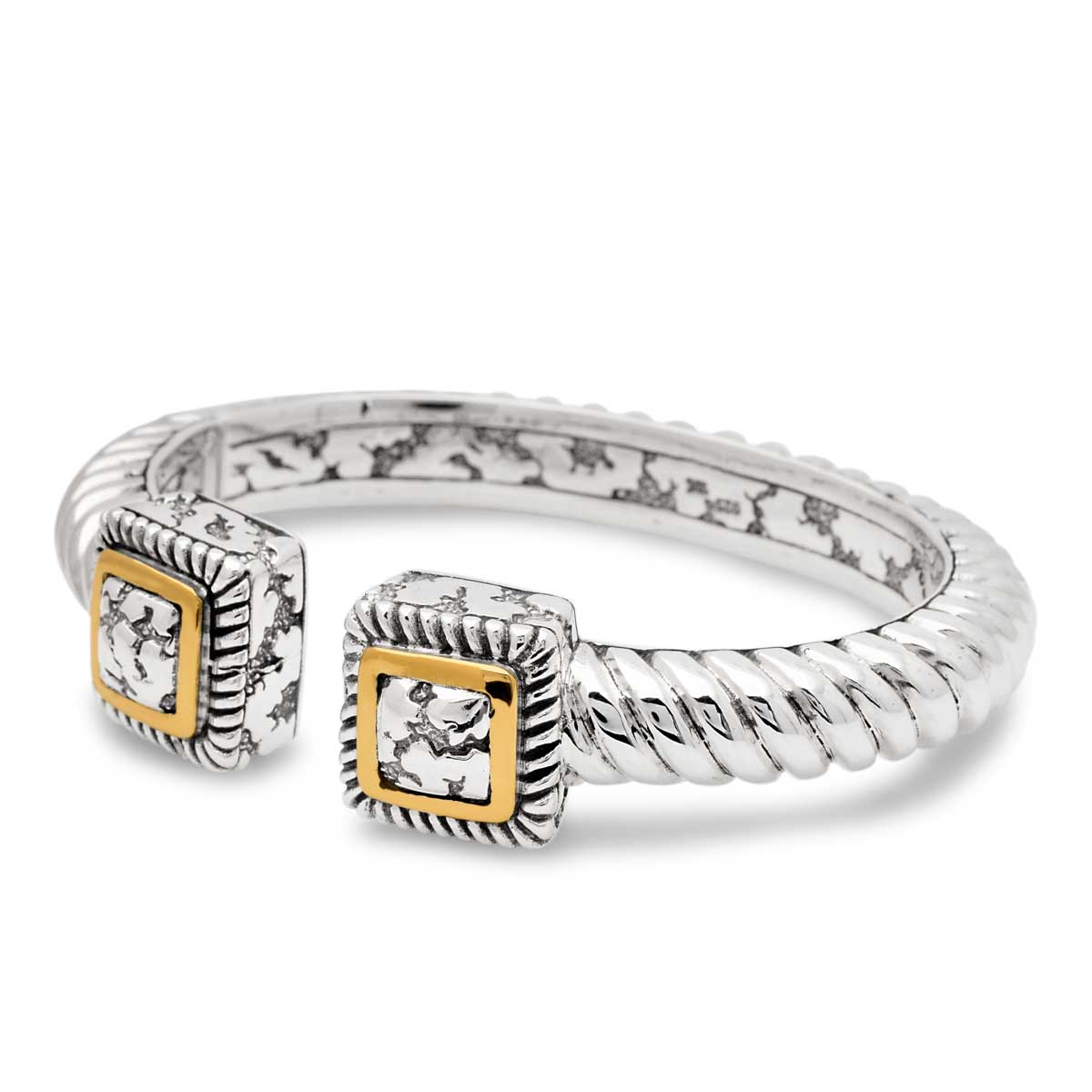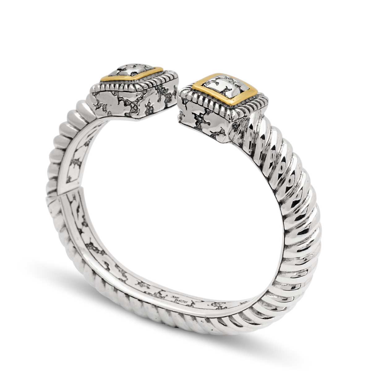 Brazalete de cable de plata y oro, motivo de yeso, oro de 18 quilates
