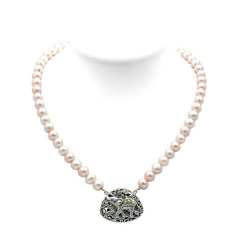 Collar de oro y plata, elefante con mega nube mendung, perla de 8 mm