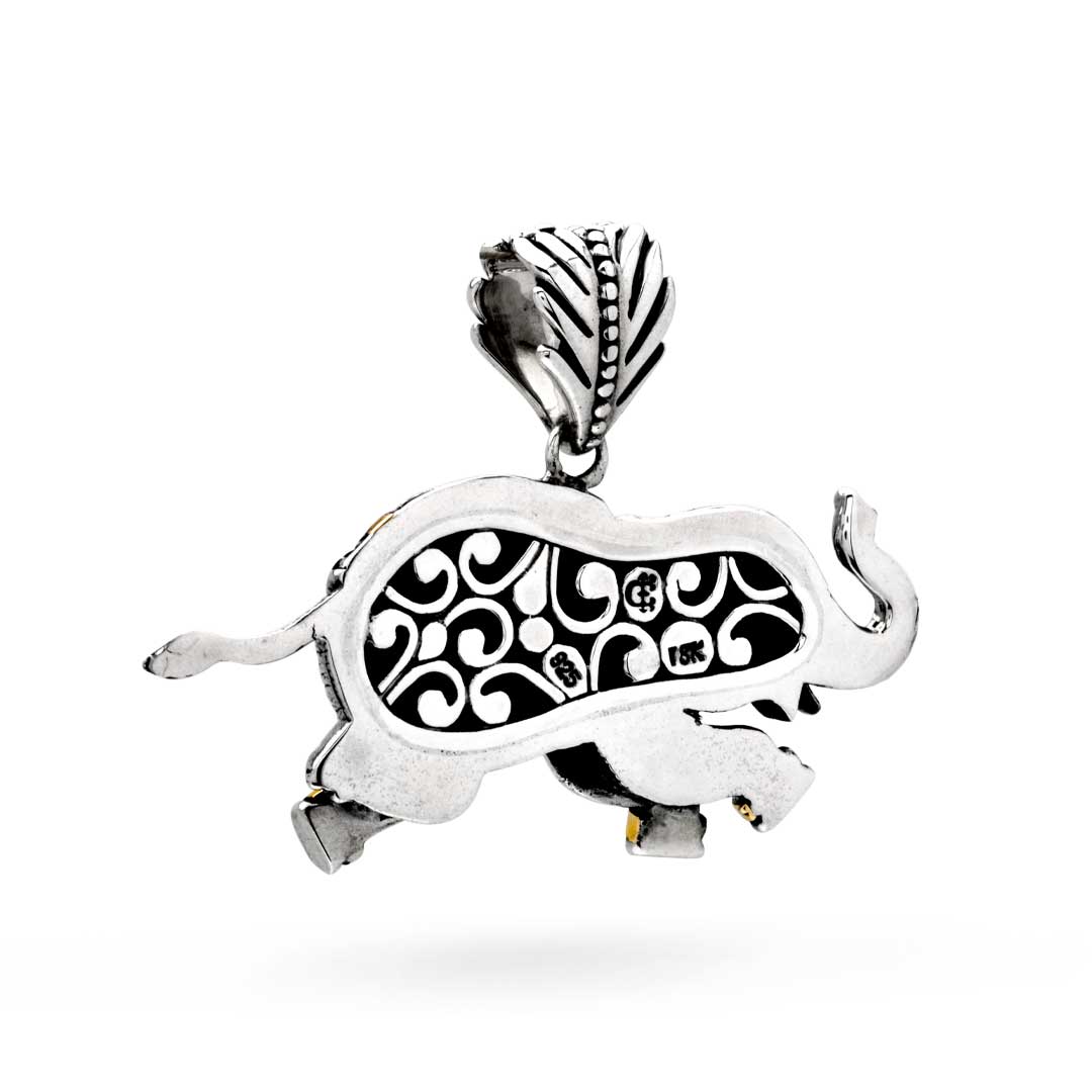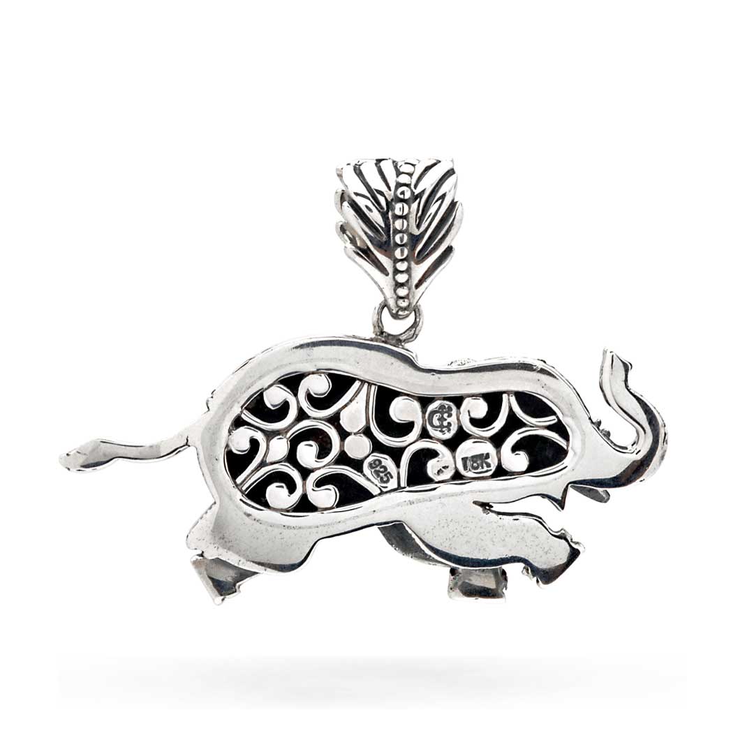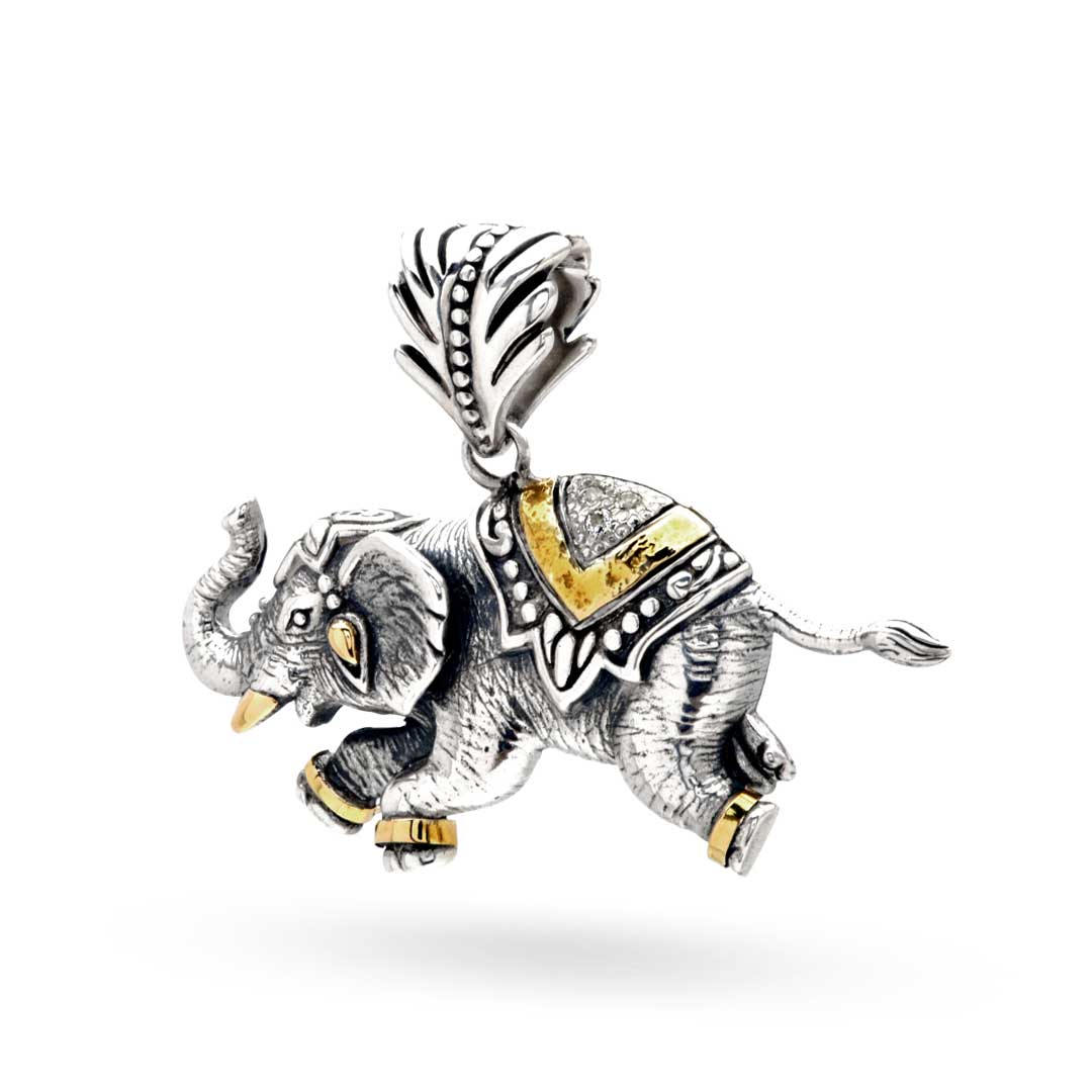 Colgante de oro y plata con elefante y pavé de topacio blanco