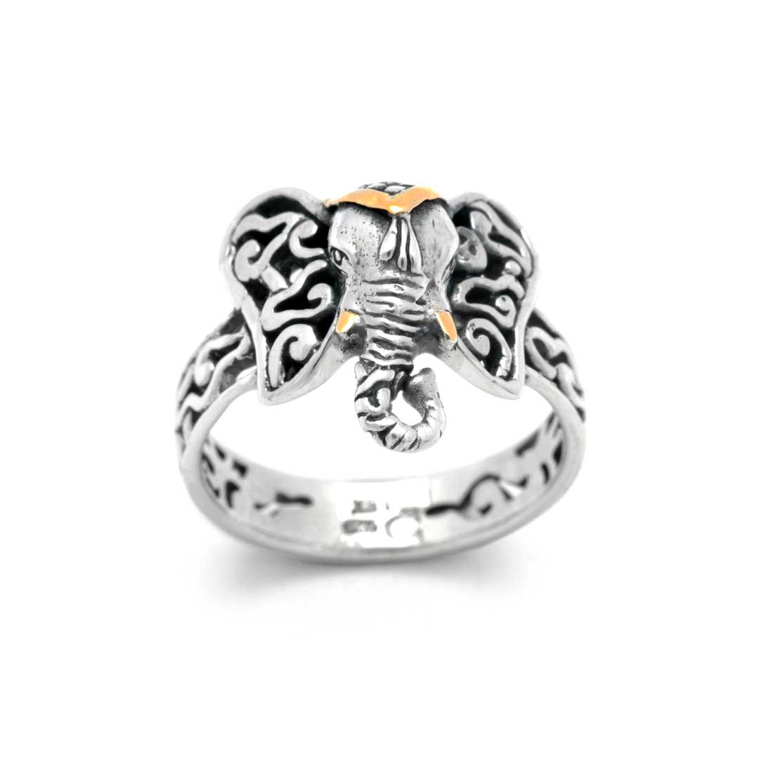 Anillo de elefante de oro y plata