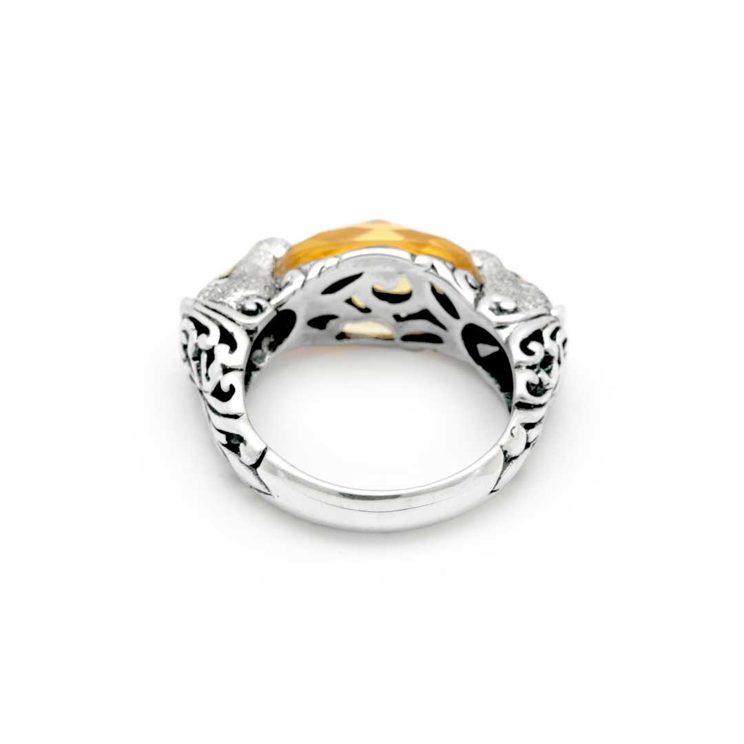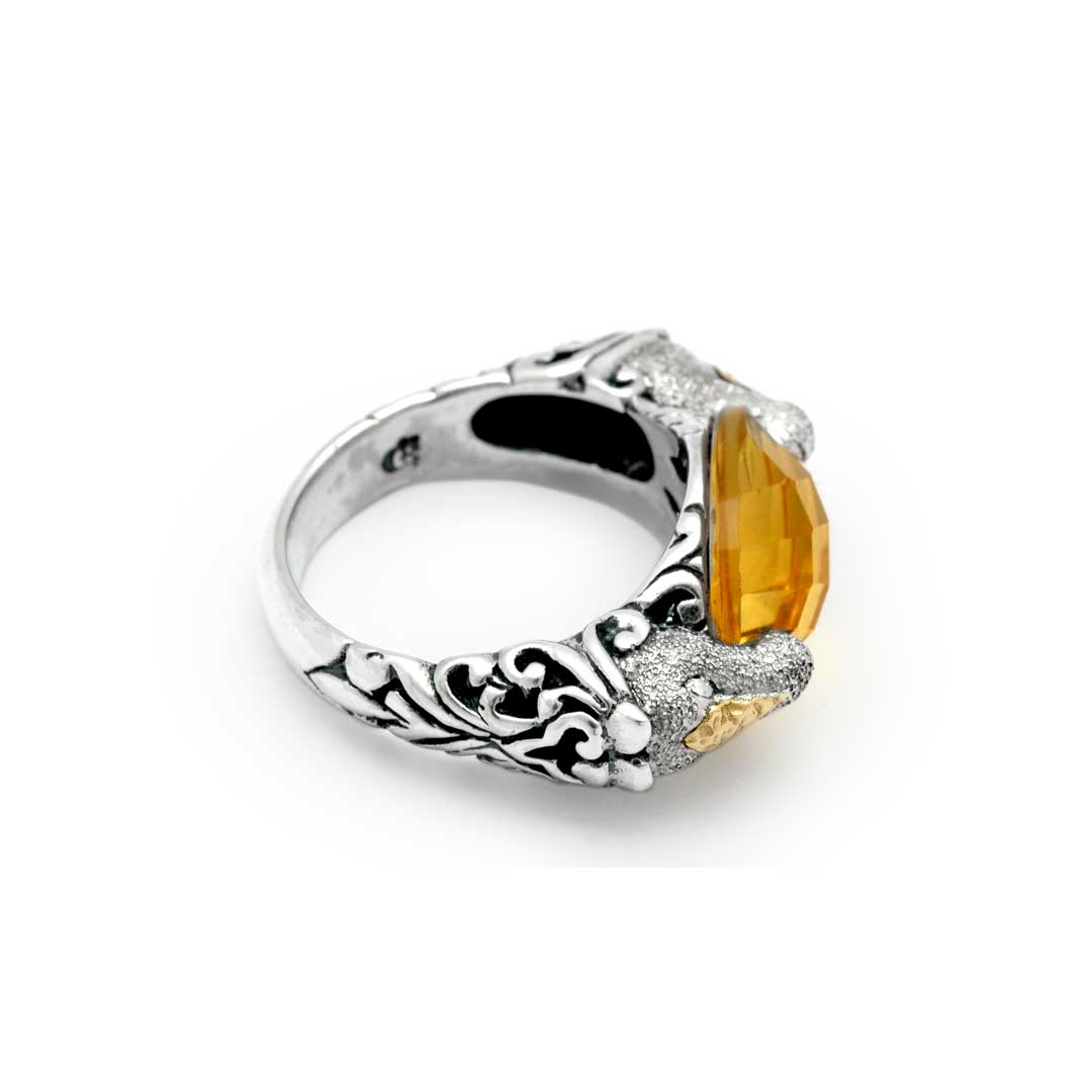Anillo de caballo de oro y plata Mega Mendung, cuarzo citrino 10x14