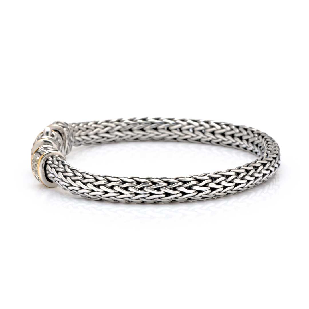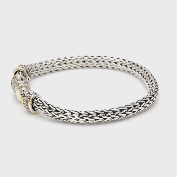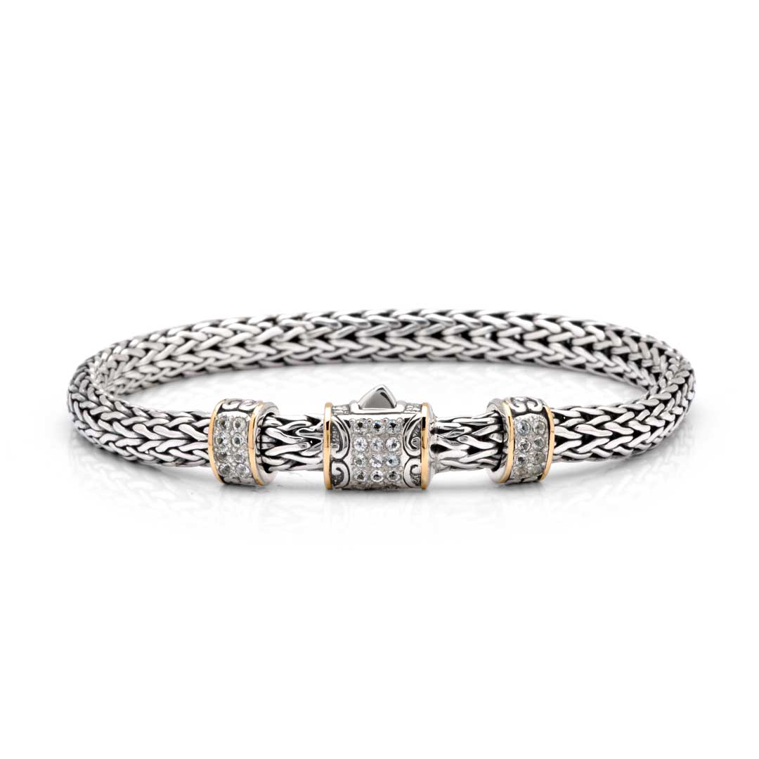 Pulsera de oro y plata, motivo de hueso de dragón, tulang naga ovalado de 4x6 con cierre de resorte, engaste pavé de topacio blanco