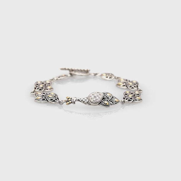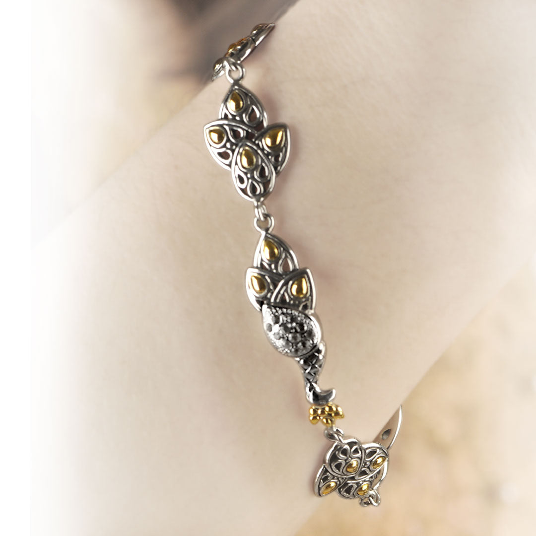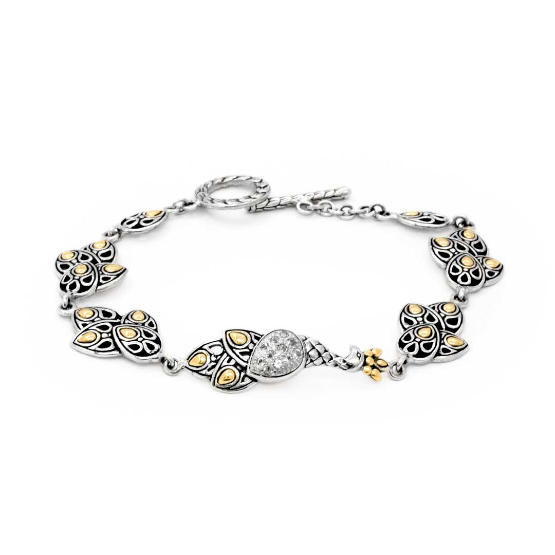 Pulsera de oro y plata con fénix y pavé de topacio blanco