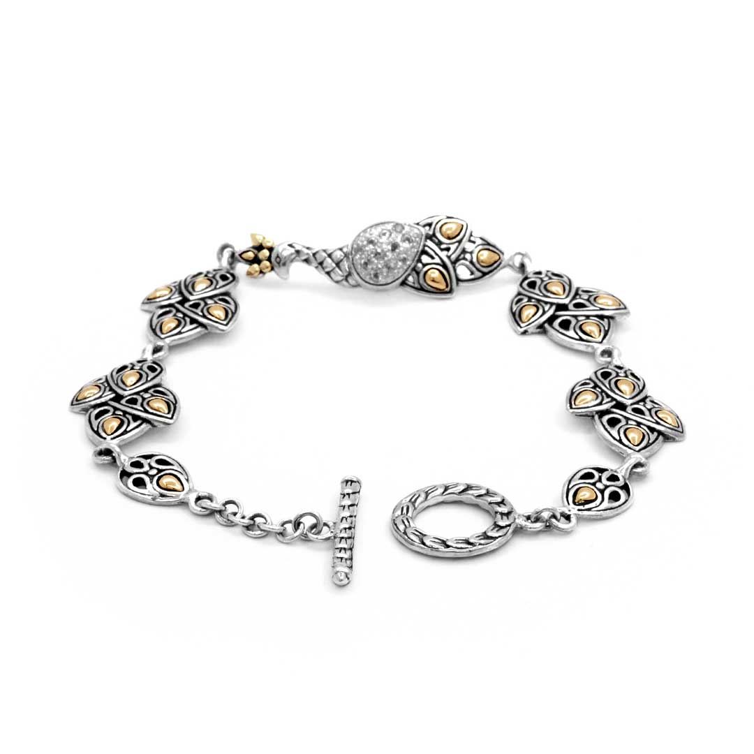 Pulsera de oro y plata, colección Phoenix, pavé de topacios blancos