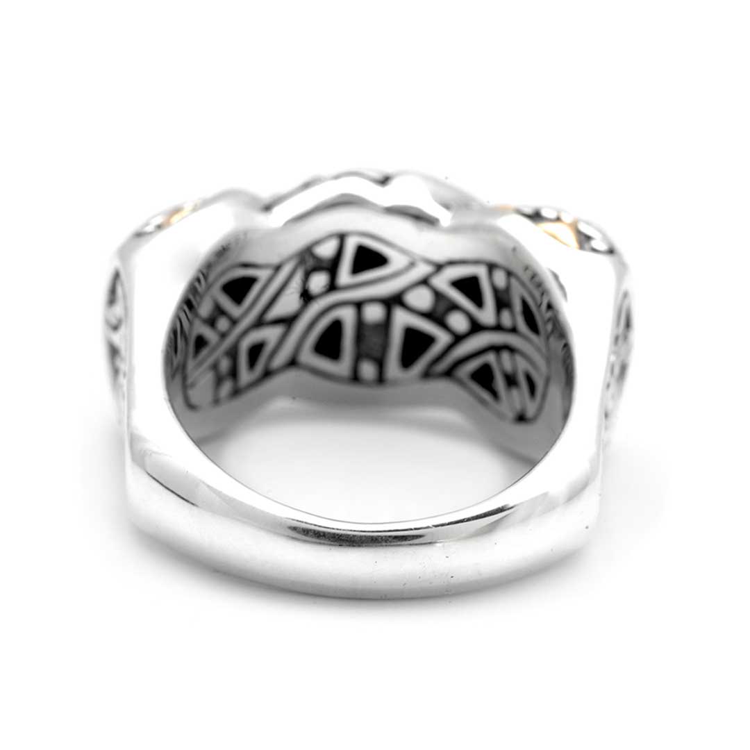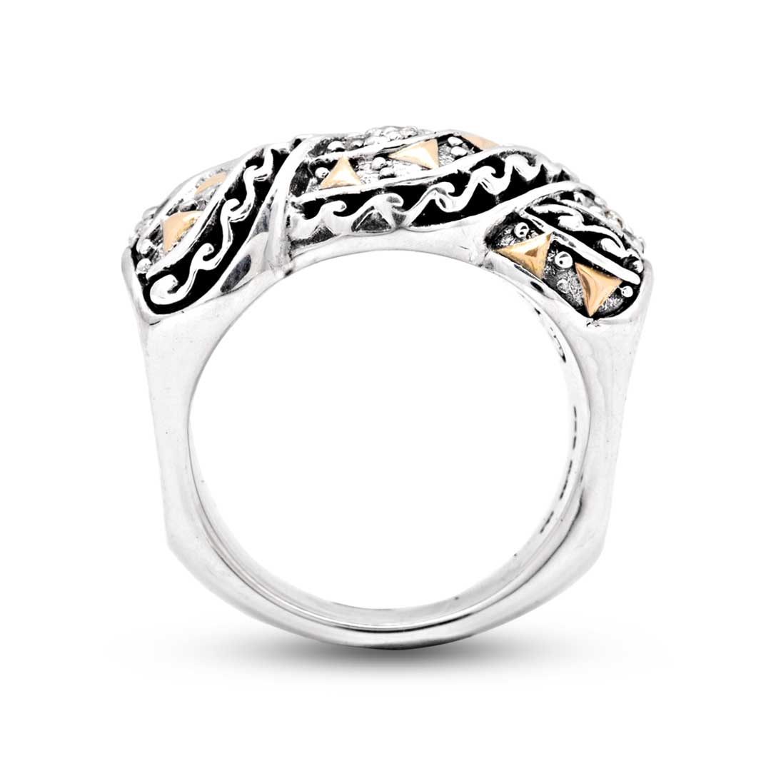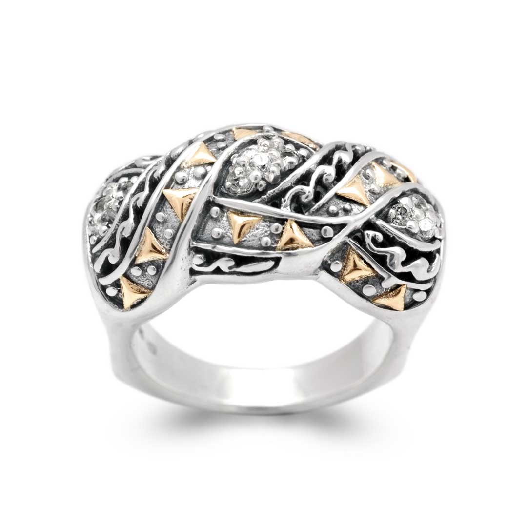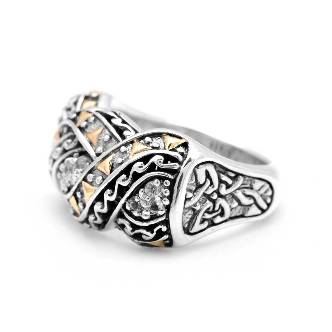 Bague en or et argent, motif balinais, zirconiums