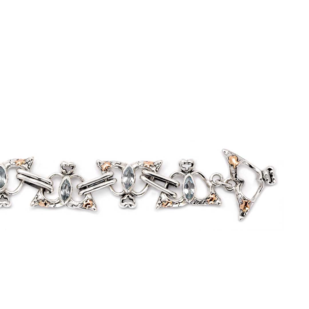 Bracelet en or et argent orné d'un motif puzzle et d'un ciel en topaze bleue