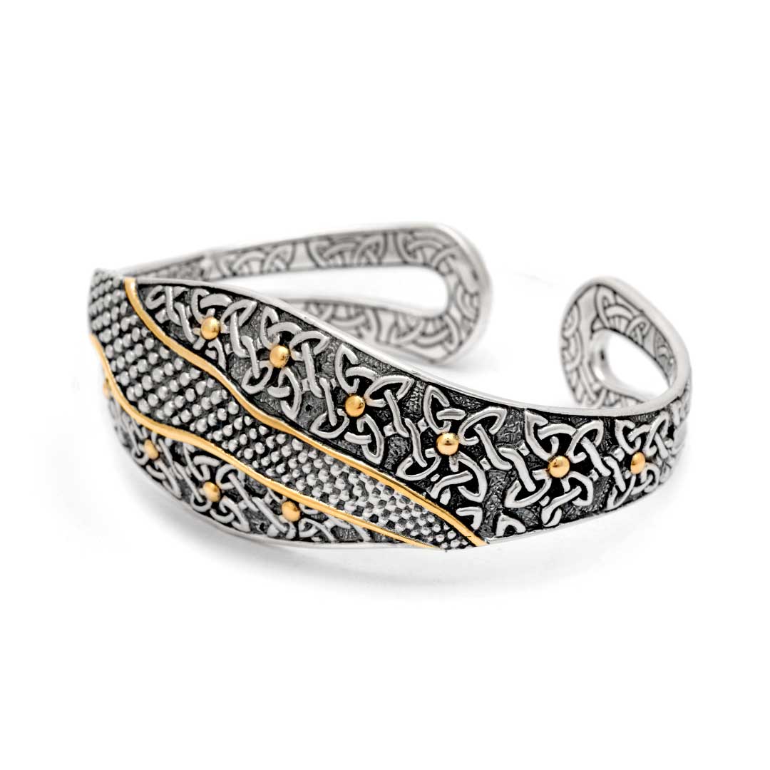 Bracelet manchette en or et argent, motif celtique balinais, sans pierres