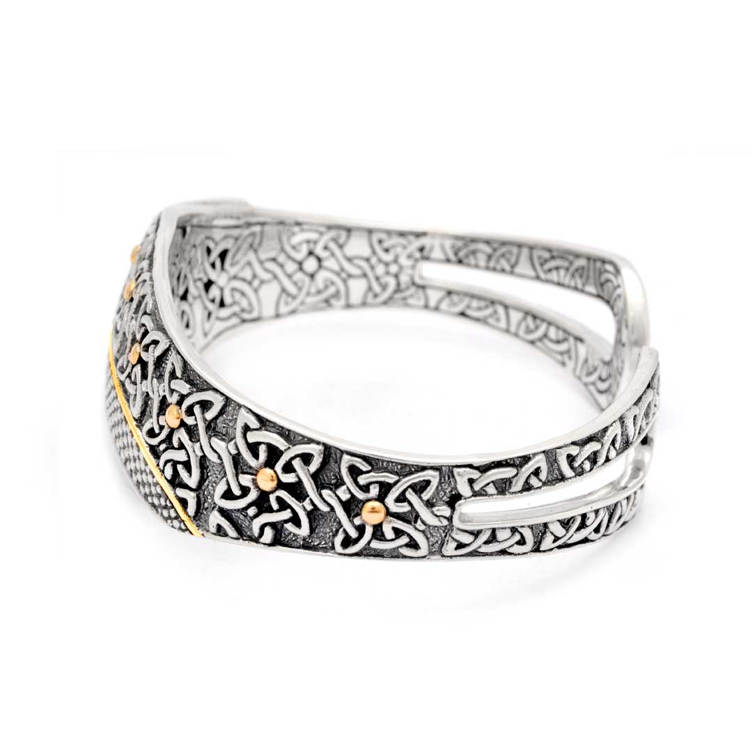 Bracelet manchette en or et argent, sans pierres. Motif celtique balinais
