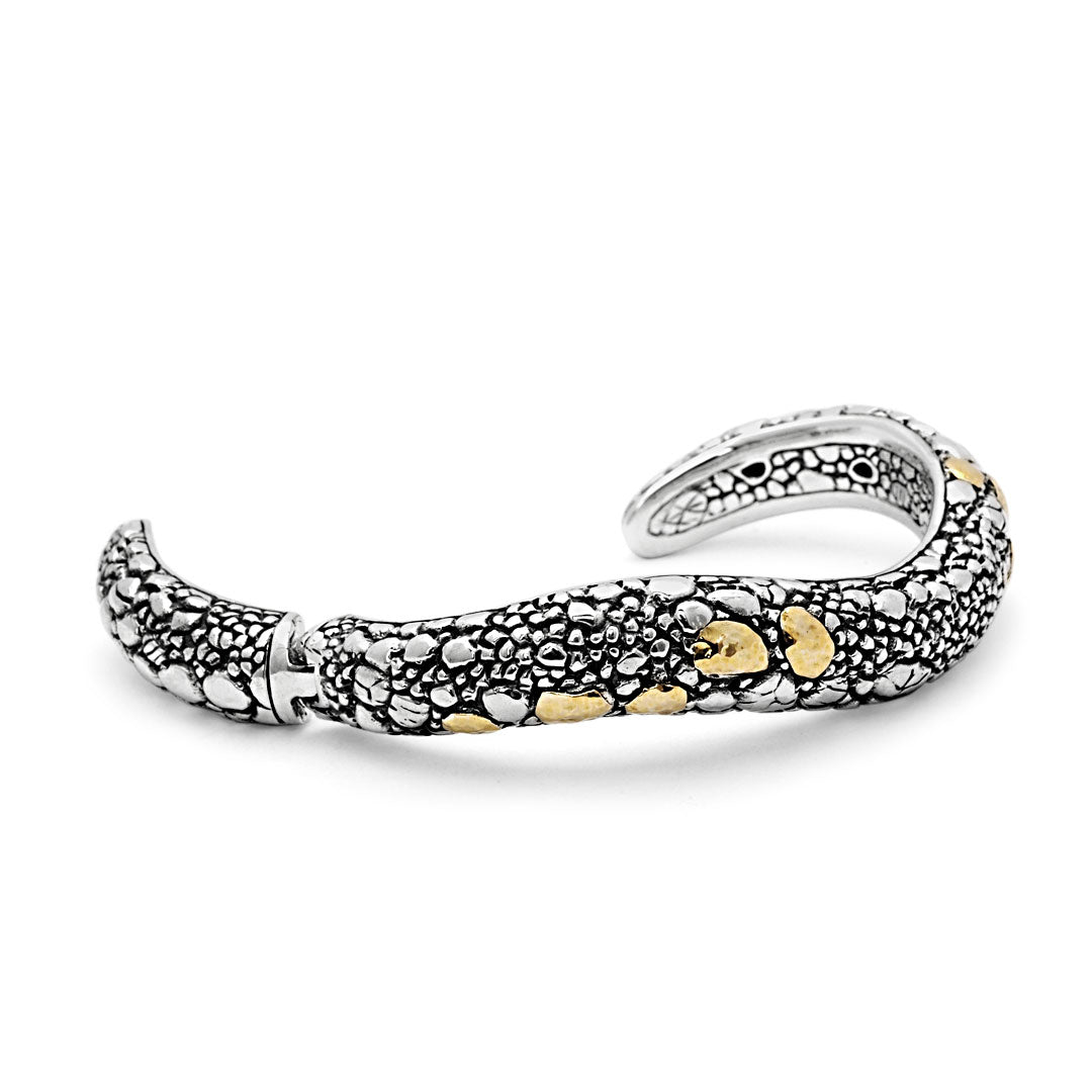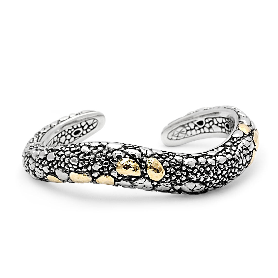 Bracelet manchette en or et argent, imitation crocodile