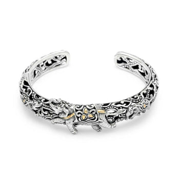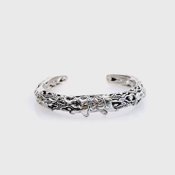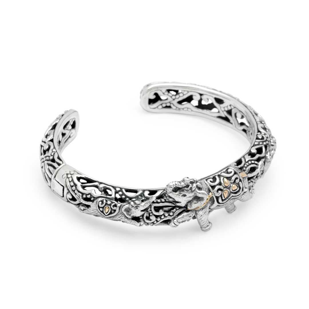 Bracelet manchette en or et argent, éléphant avec méga nuage de mendung