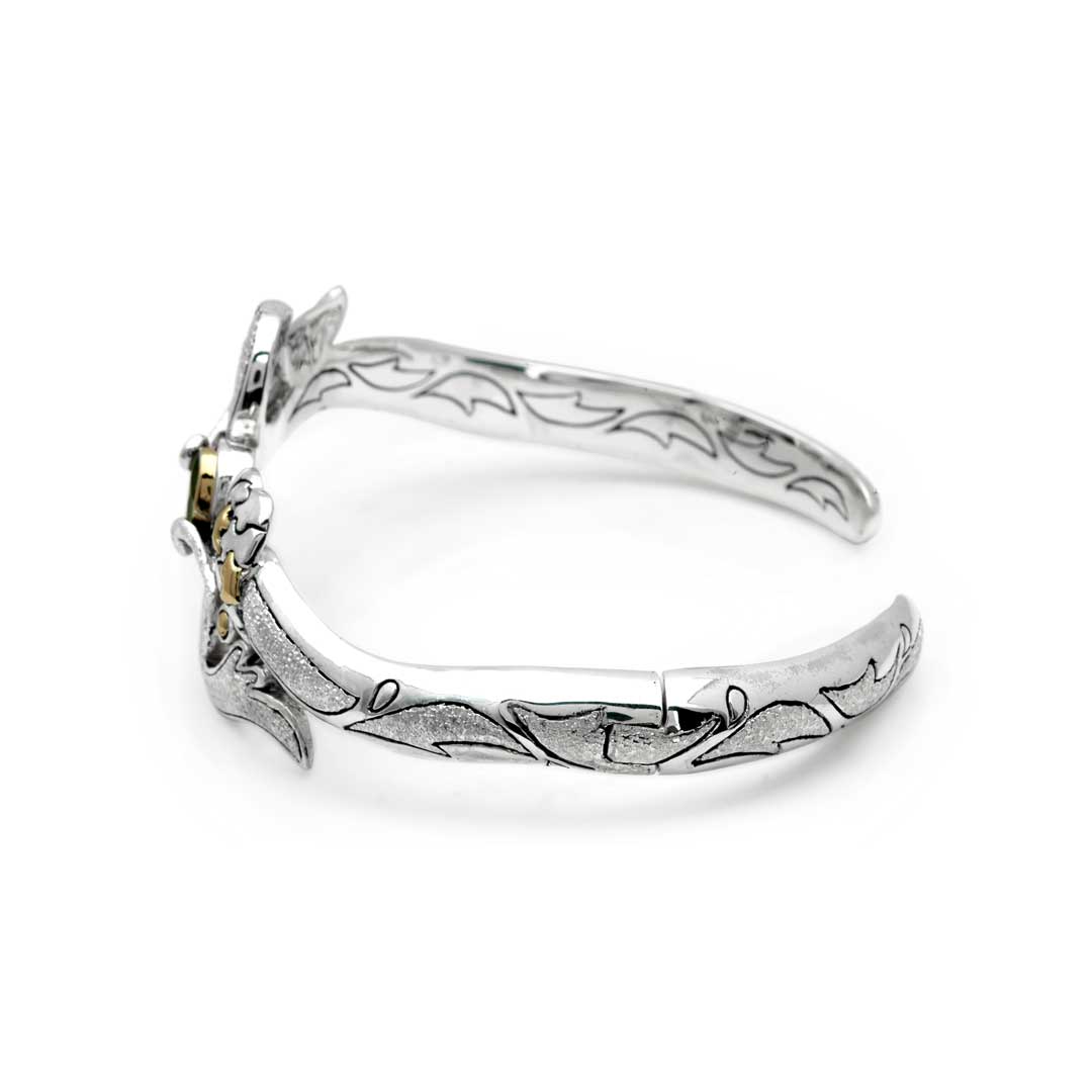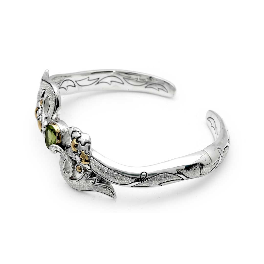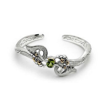 Manchette de cheville en or et argent, collection puzzle, sertie d'un péridot ovale 6x8mm