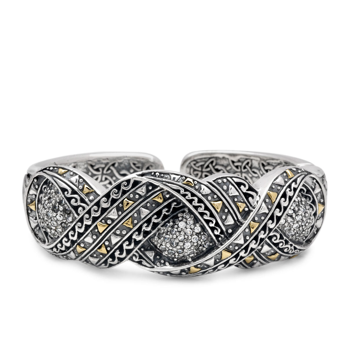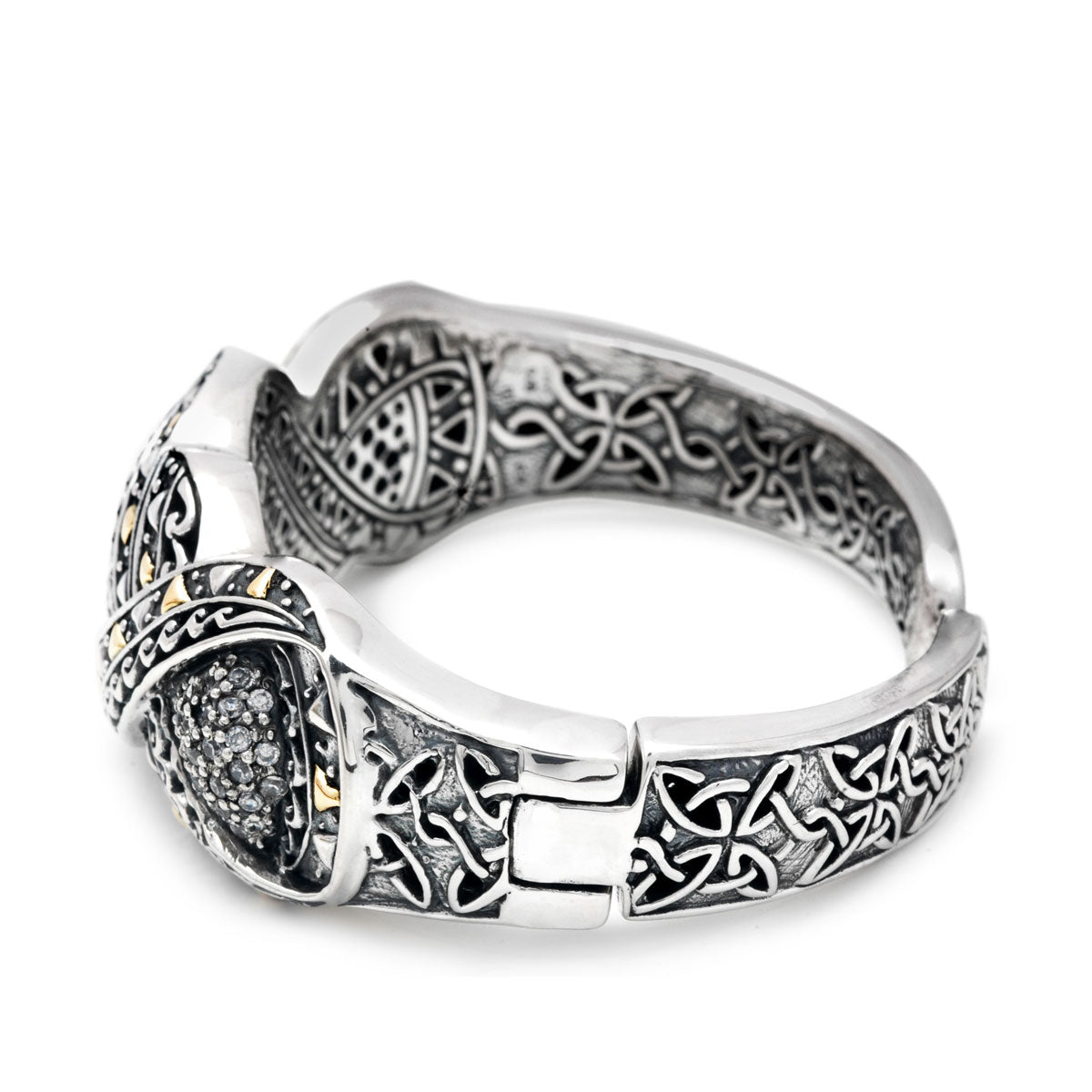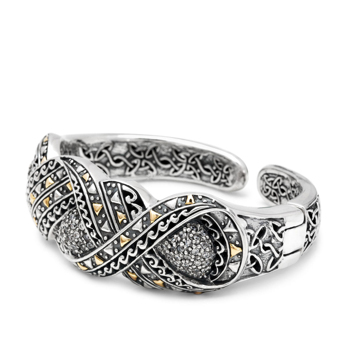 Manchette en or et argent ornée d'un motif balinais et sertie de topazes blanches